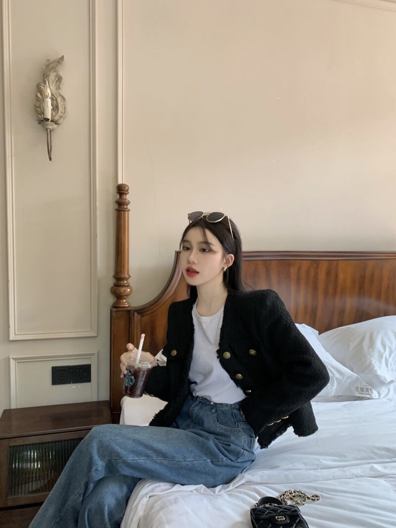Xiaoxiangfeng high-end black long-sleeved coat women's autumn 2022 new design sense of niche temperament cardigan top ロング ブラック カーディガン オータム 秋物 0921916017427583