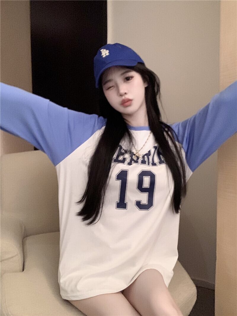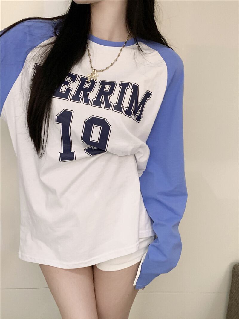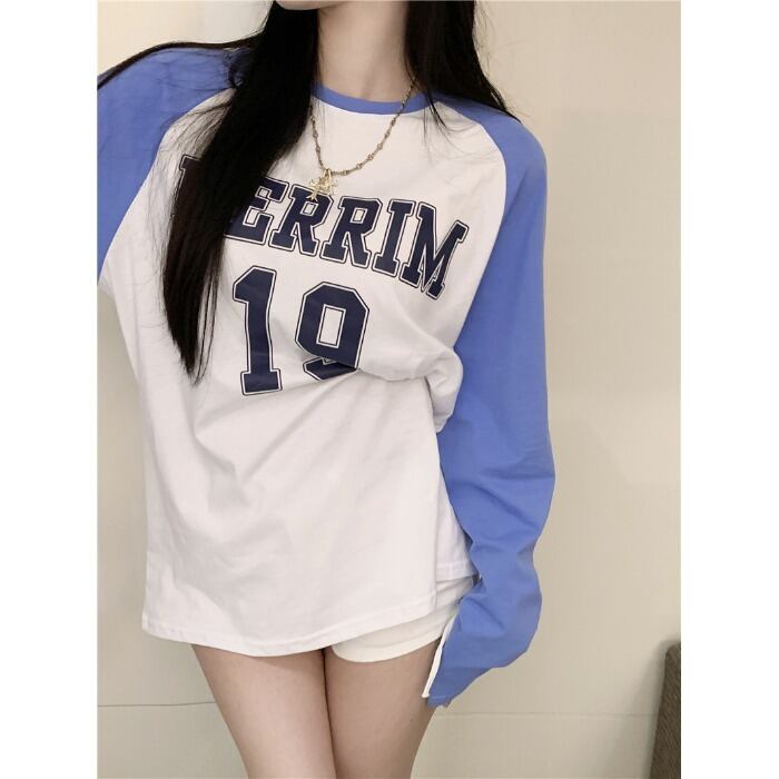sense fashion contrast color letter printing long-sleeved T-shirt women's autumn 2022 new version all-match loose top ロング オータム 秋物 Tシャツ 0921966349026547
