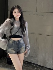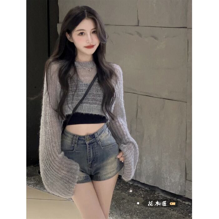 sense chic hollow thin section long-sleeved sweater women's autumn 2022 new temperament short top trend ショート ロング オータム 秋物 0921924030989141