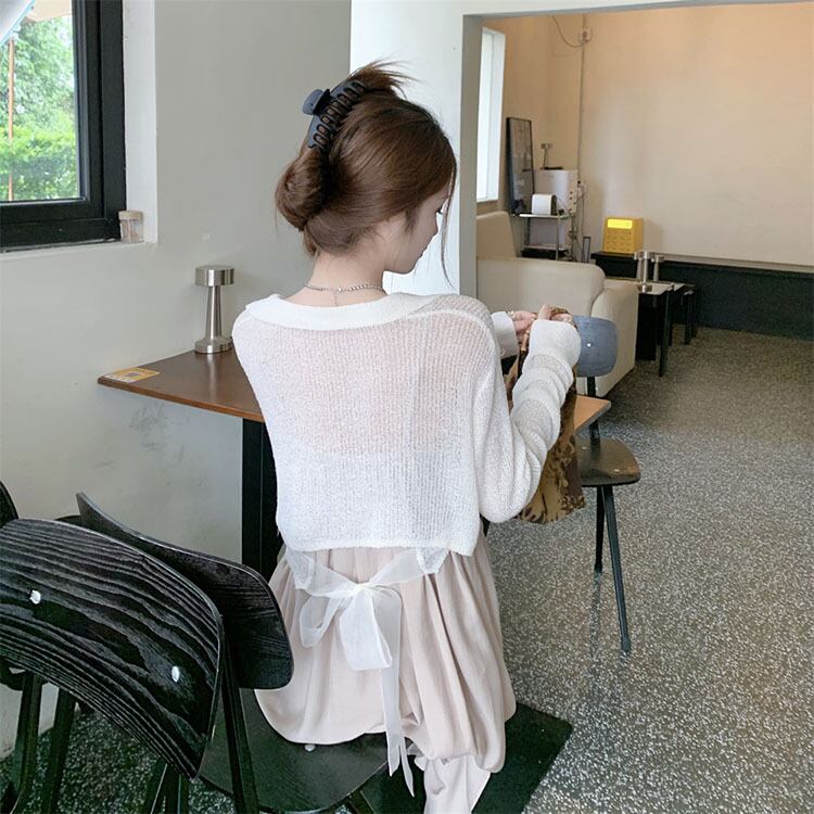 Lazy style thin soft waxy long-sleeved sunscreen sweater women's autumn 2022 new temperament thin short top ショート ロング オータム 秋物 0921976787105108
