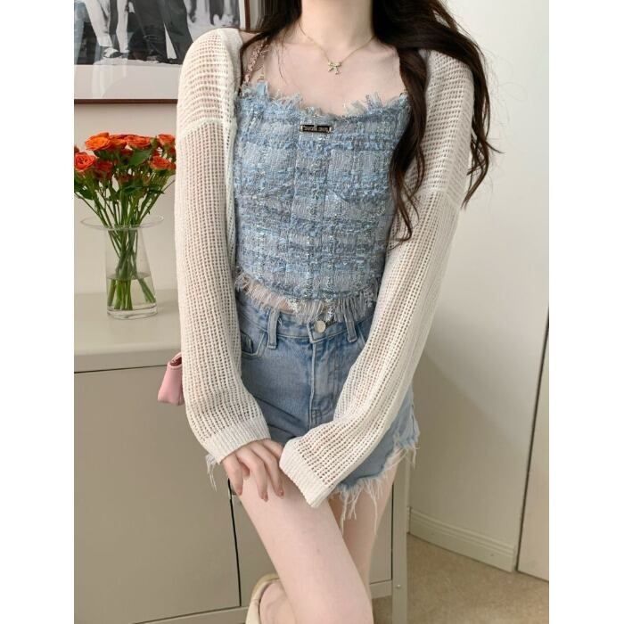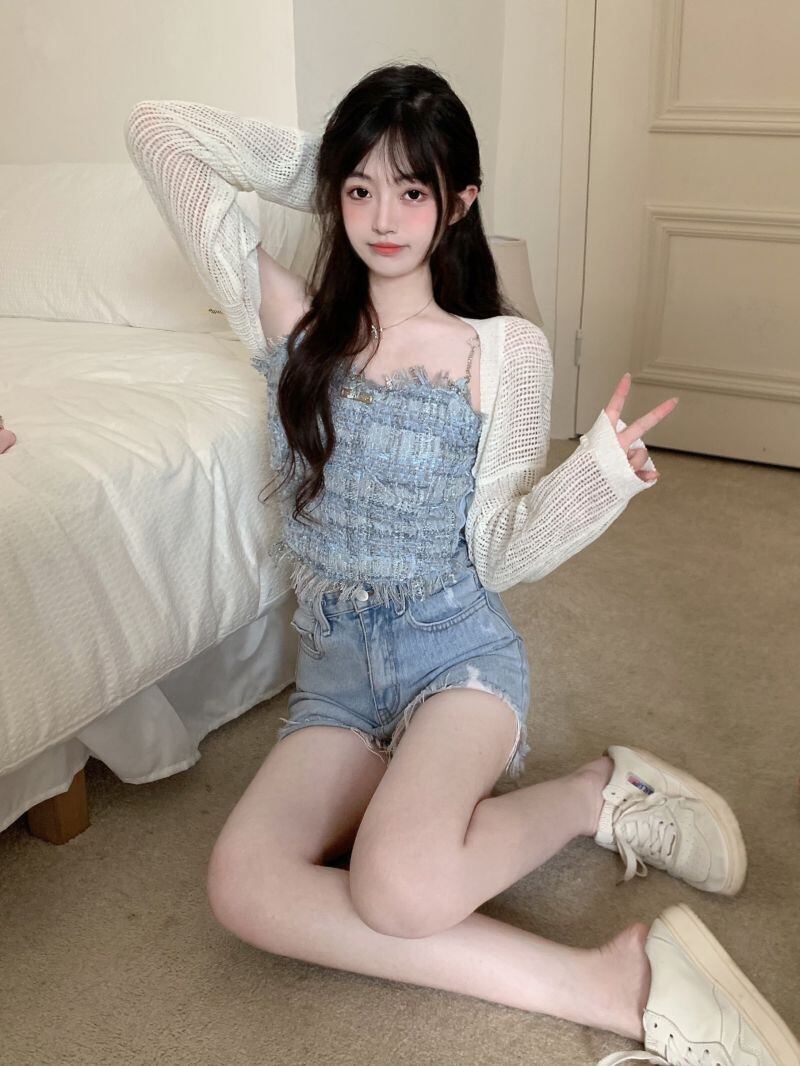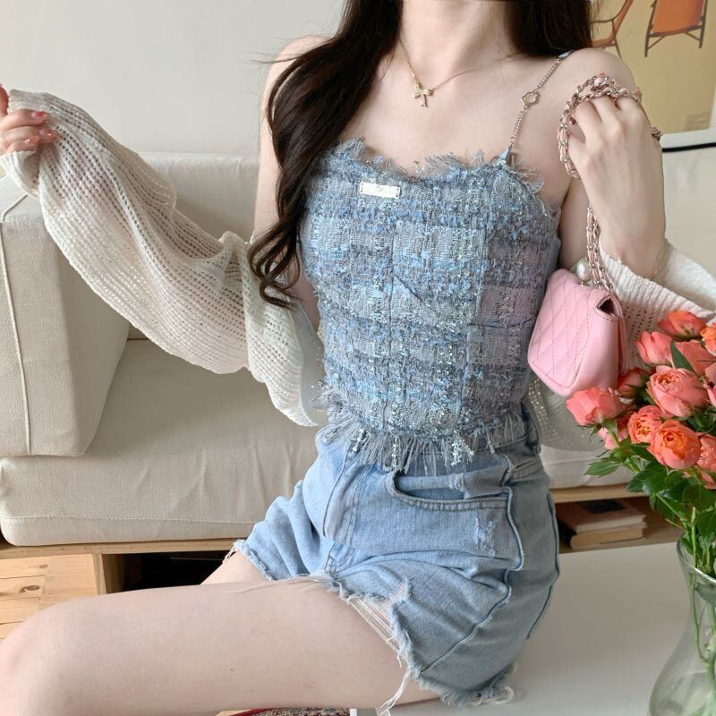 Xiaoxiangfeng blue camisole women's inner wear summer 2022 new self-cultivation tel short top outer wear ショート ブルー サマー 夏物 0921955533368116