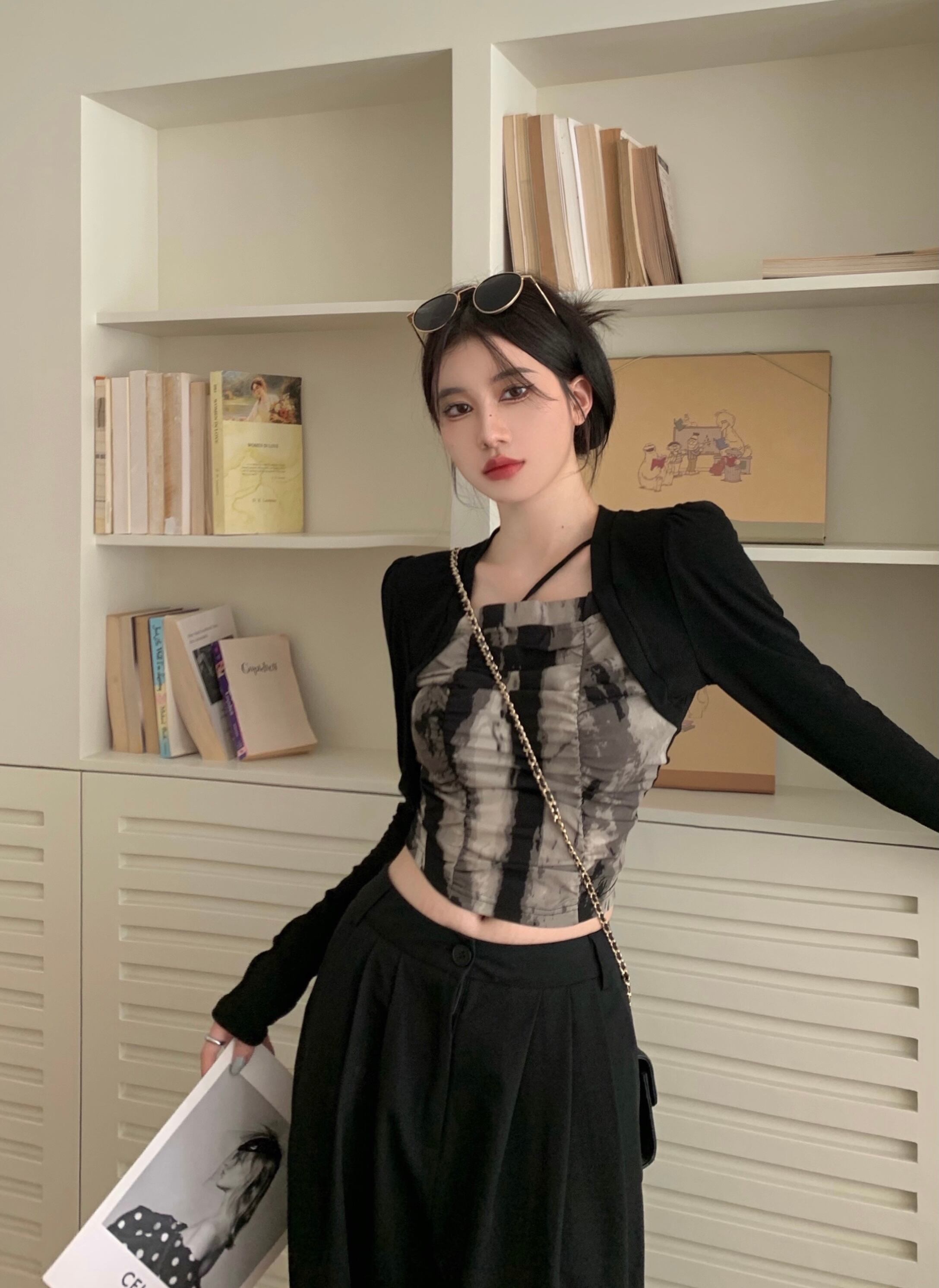 Pure desire design tie-dye T-shirt women's autumn 2022 new niche chic slim fit short long-sleeved top ショート ロング オータム 秋物 スリム Tシャツ 0921980217843738