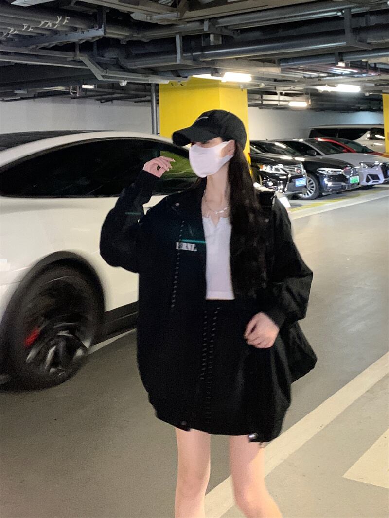 Couple's fashionable fried street letter print black coat women's autumn 2022 new loose mid-length top trendy ブラック ストリート オータム 秋物 0921996452866309
