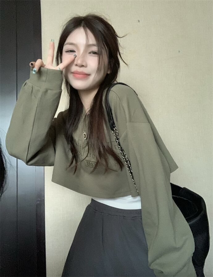 Retro sweet and cool style embroidered letter sweater women's autumn 2022 new version all-match short long-sleeved pullover top ショート ロング レッド レトロ 刺繍 大人ガーリー スウィート キュート カジュアル オータム 秋物 0921913176948716