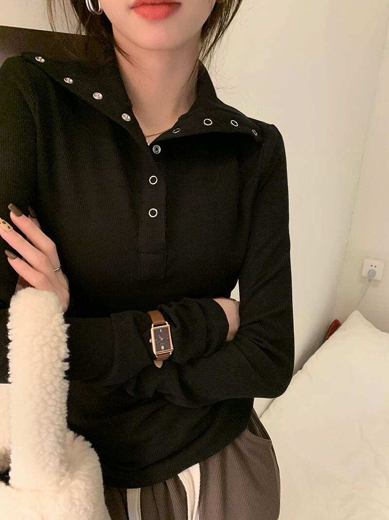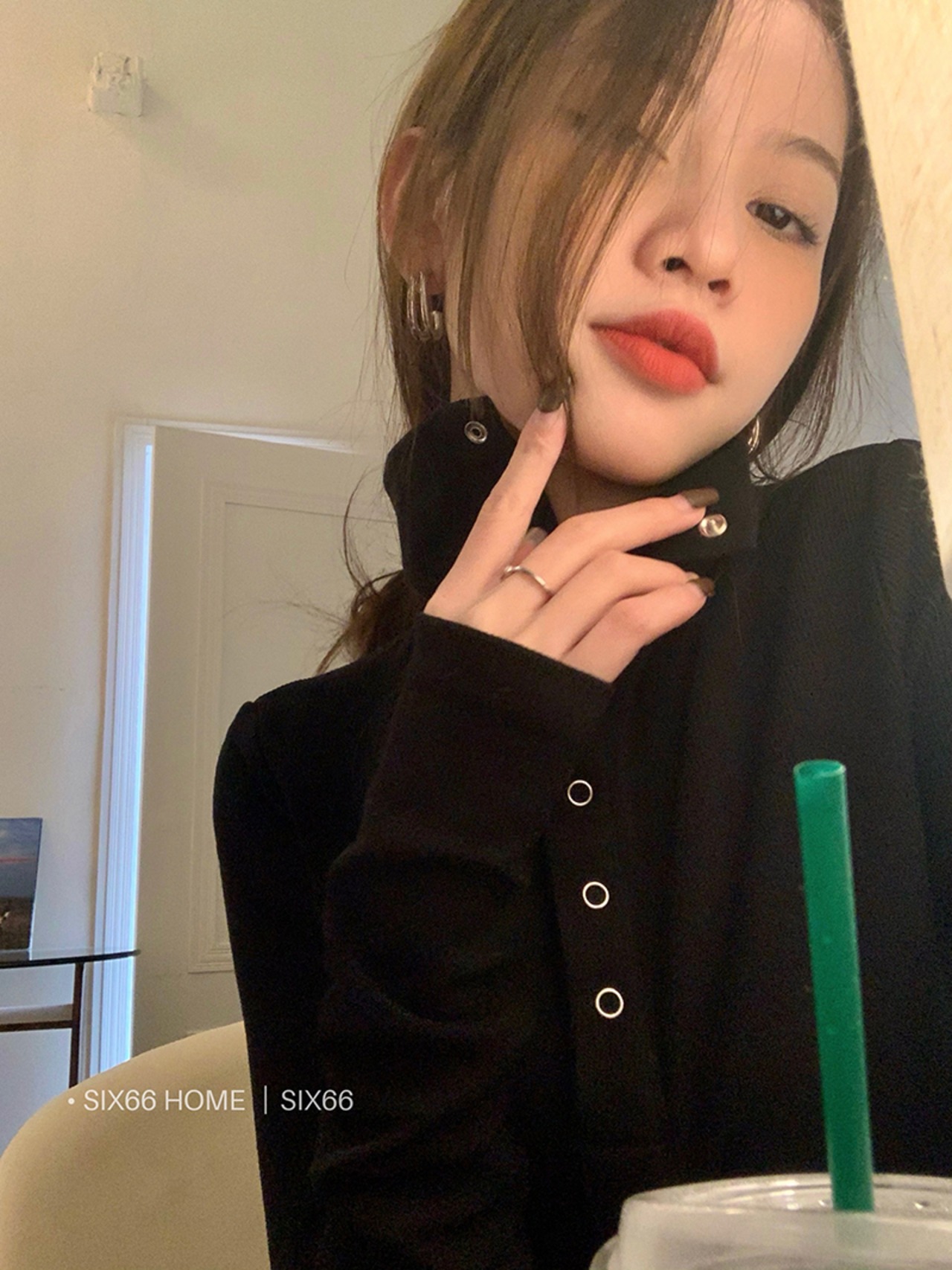 version chic self-cultivation high-neck black T-shirt women's new 2022 autumn thin bottoming shirt is thin and long-sleeved top ロング ブラック オータム 秋物 Tシャツ 0921978846525886