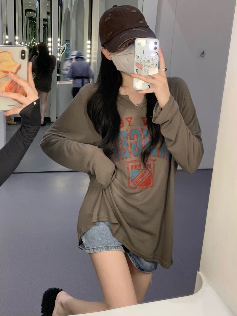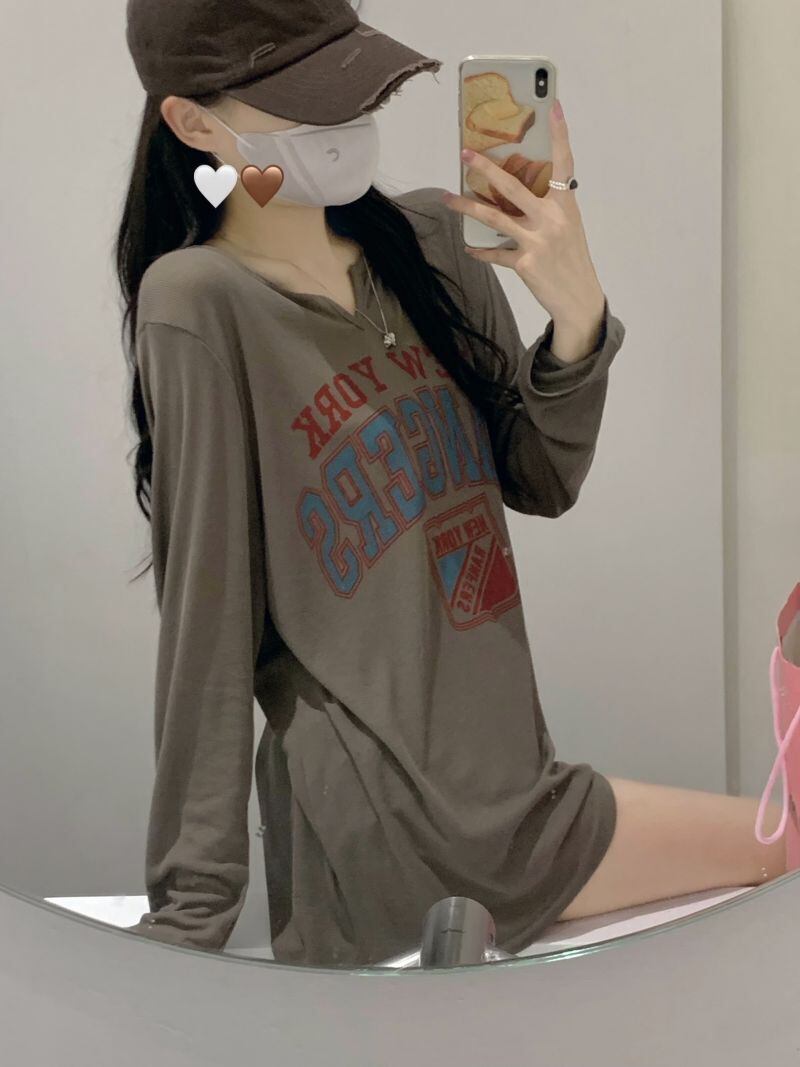 sense American letter printing long-sleeved sunscreen T-shirt women's autumn 2022 new chic all-match loose top ロング オータム 秋物 Tシャツ 0921960330456808