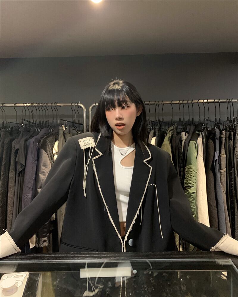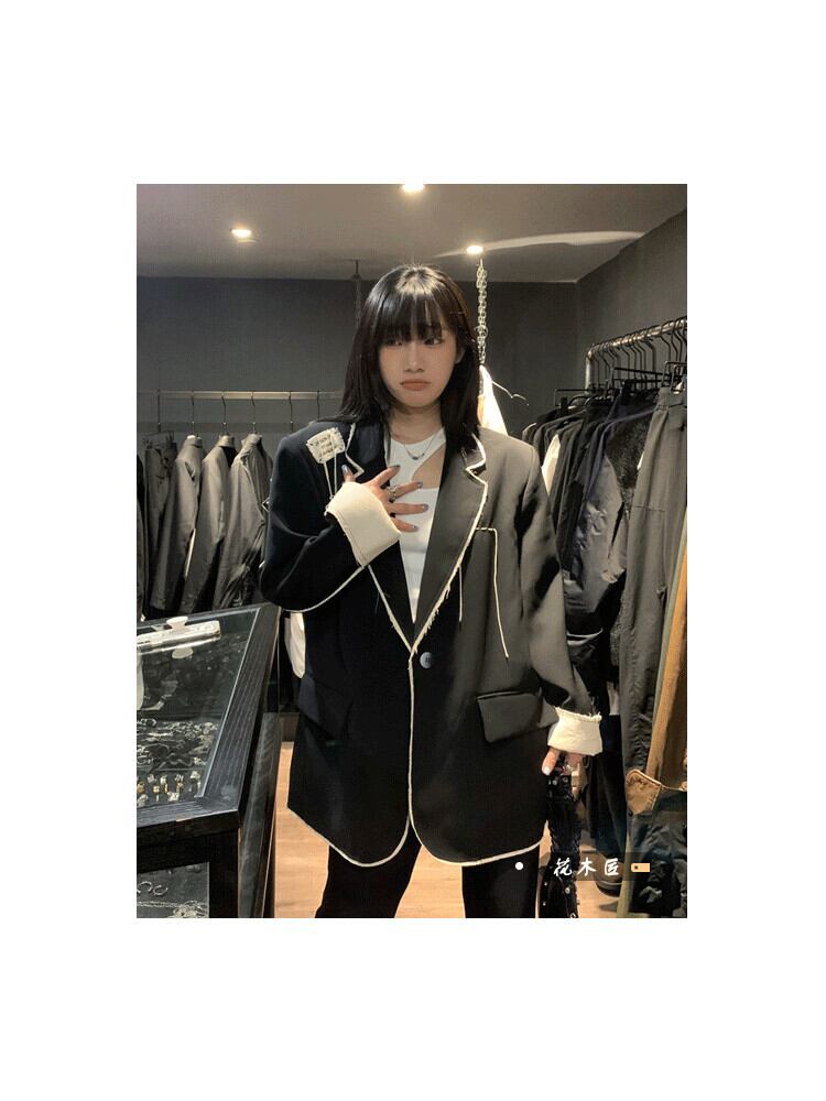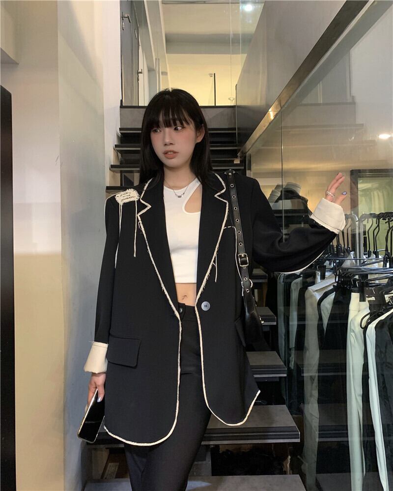able fried street contrast color suit jacket women's autumn 2022 new loose and thin medium and long small suit jacket trendy ロング ストリート オータム 秋物 0921958737876110