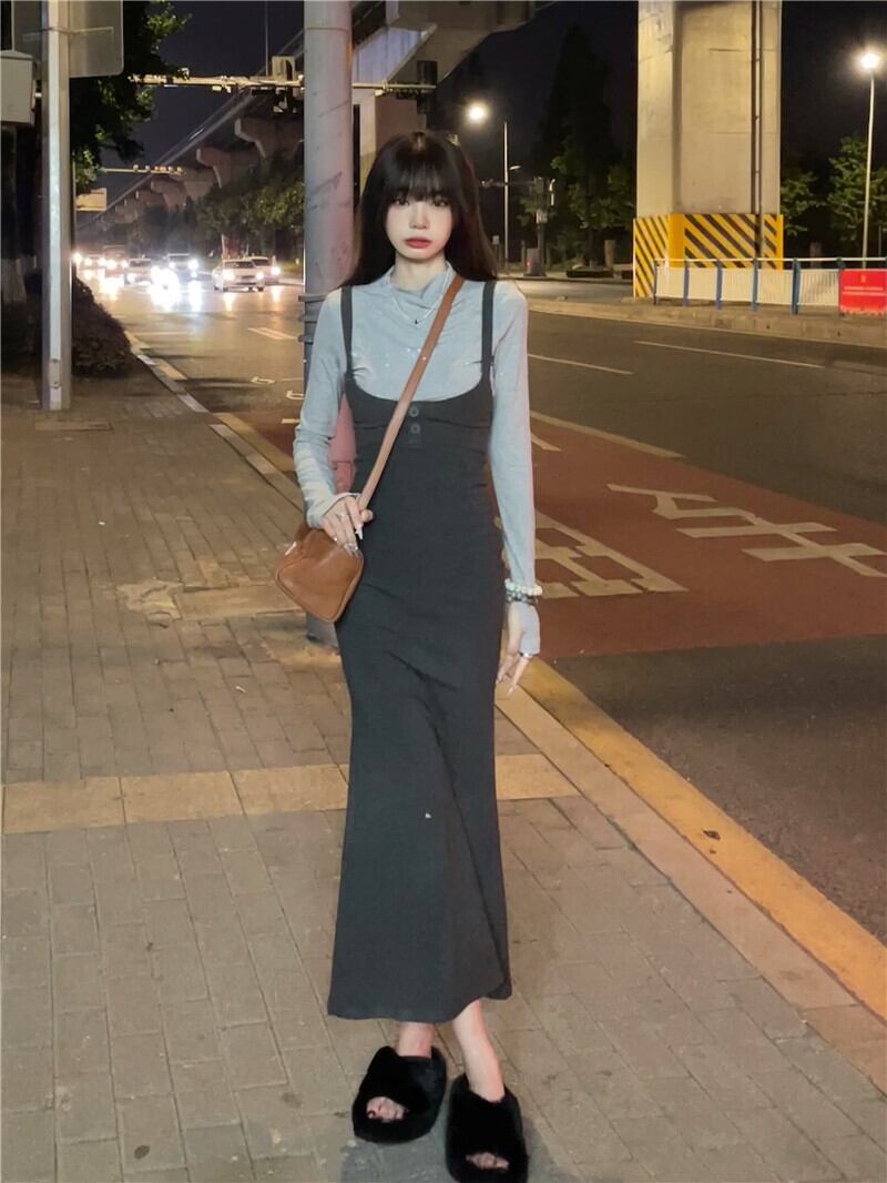 French temperament high-end suspender dress women's early autumn 2022 new gentle style slim slim fishtail skirt tide オータム 秋物 スカート スリム 0921911777645538