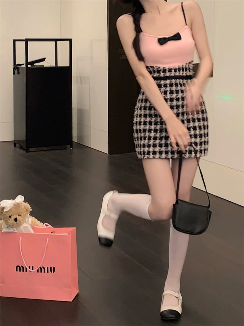 Pure desire small fragrance style suspender dress female summer 2022 new chic bow waist bag hip skirt リボン サマー 夏物 スカート 0921933472766127