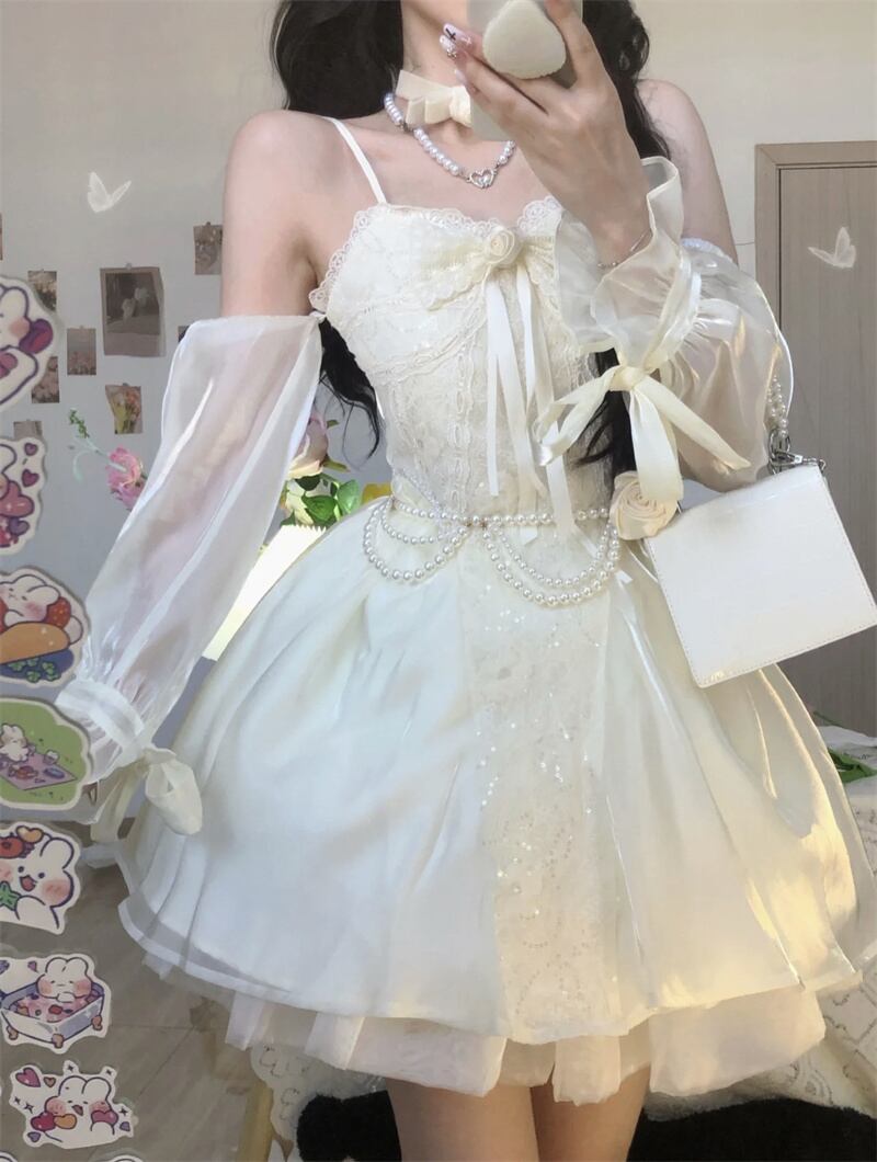 French pure desire wind heavy industry suspender dress female autumn 2022 new age-reducing bow design sense tutu skirt リボン オータム 秋物 スカート パニエ ペチコート ピュア 092193279356536
