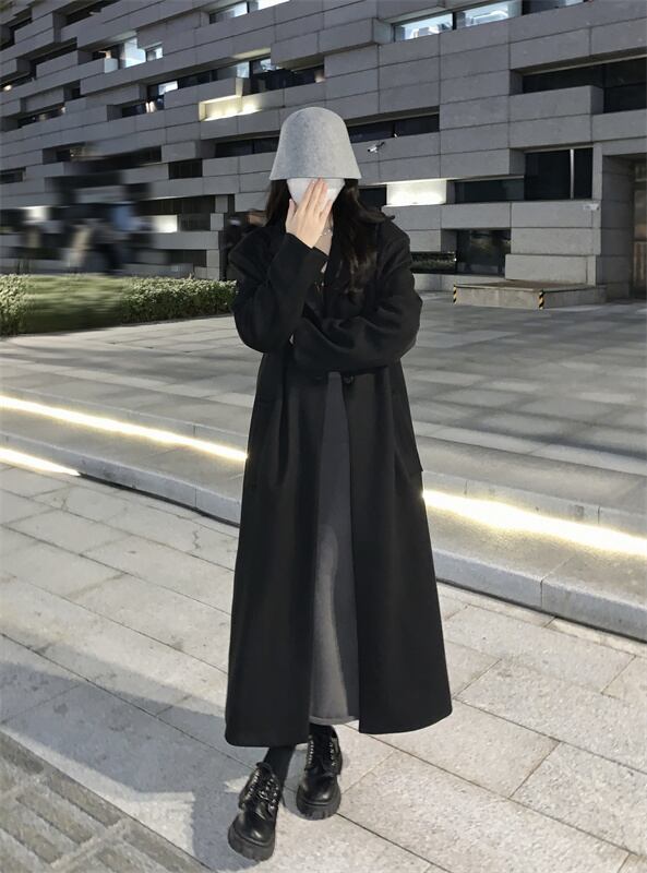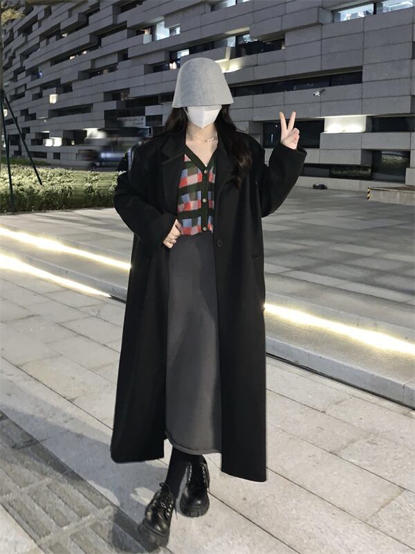 -end fashion loose black suit woolen coat women's autumn 2022 new version mid-length top trendy ブラック オータム 秋物 0921941715252606