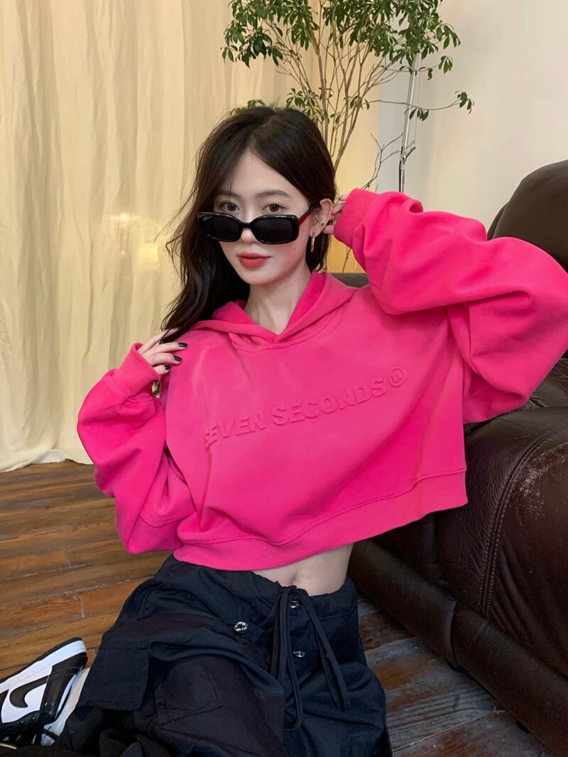 version of the sweet and spicy style three-dimensional letter hooded sweater women's autumn 2022 new short loose all-match pullover top ショート 大人ガーリー スウィート キュート カジュアル オータム 秋物 0921923491348391
