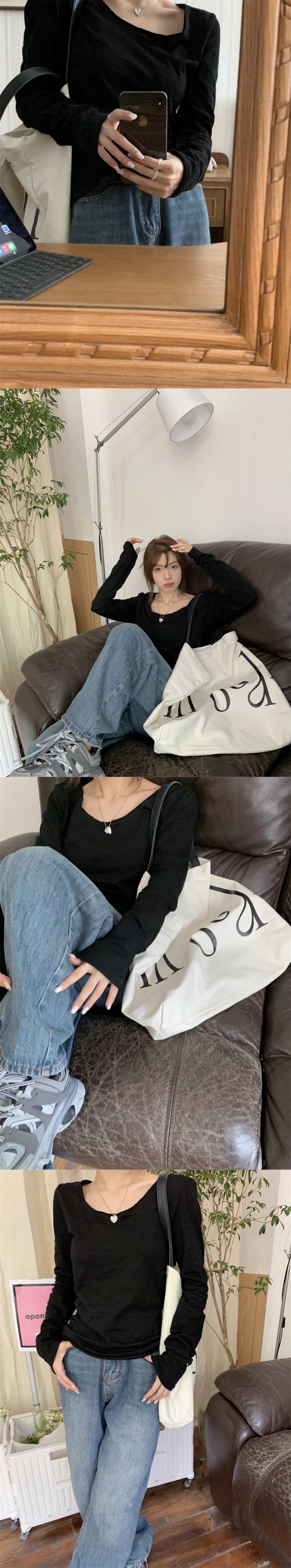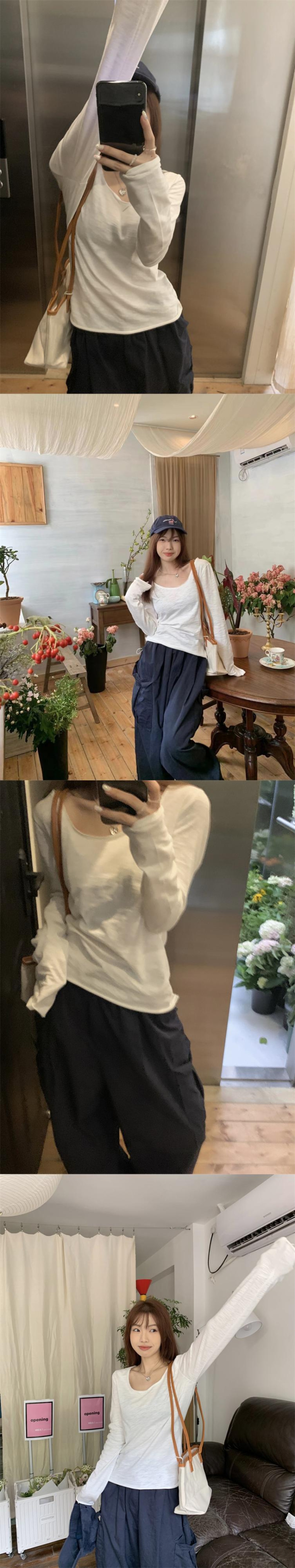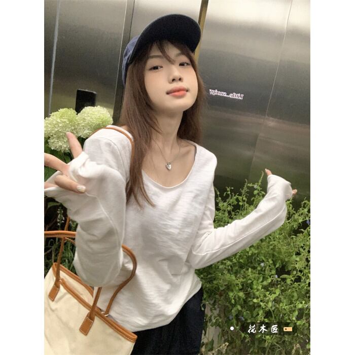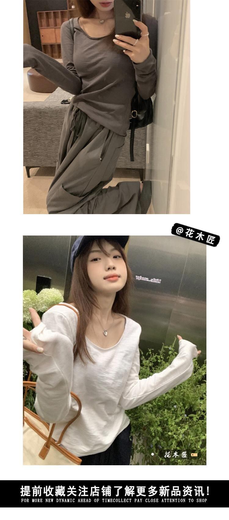 all-match U-neck long-sleeved T-shirt women's autumn 2022 new version of the simple slim fit and thin bottoming top ロング オータム 秋物 スリム Tシャツ 0921933322248193