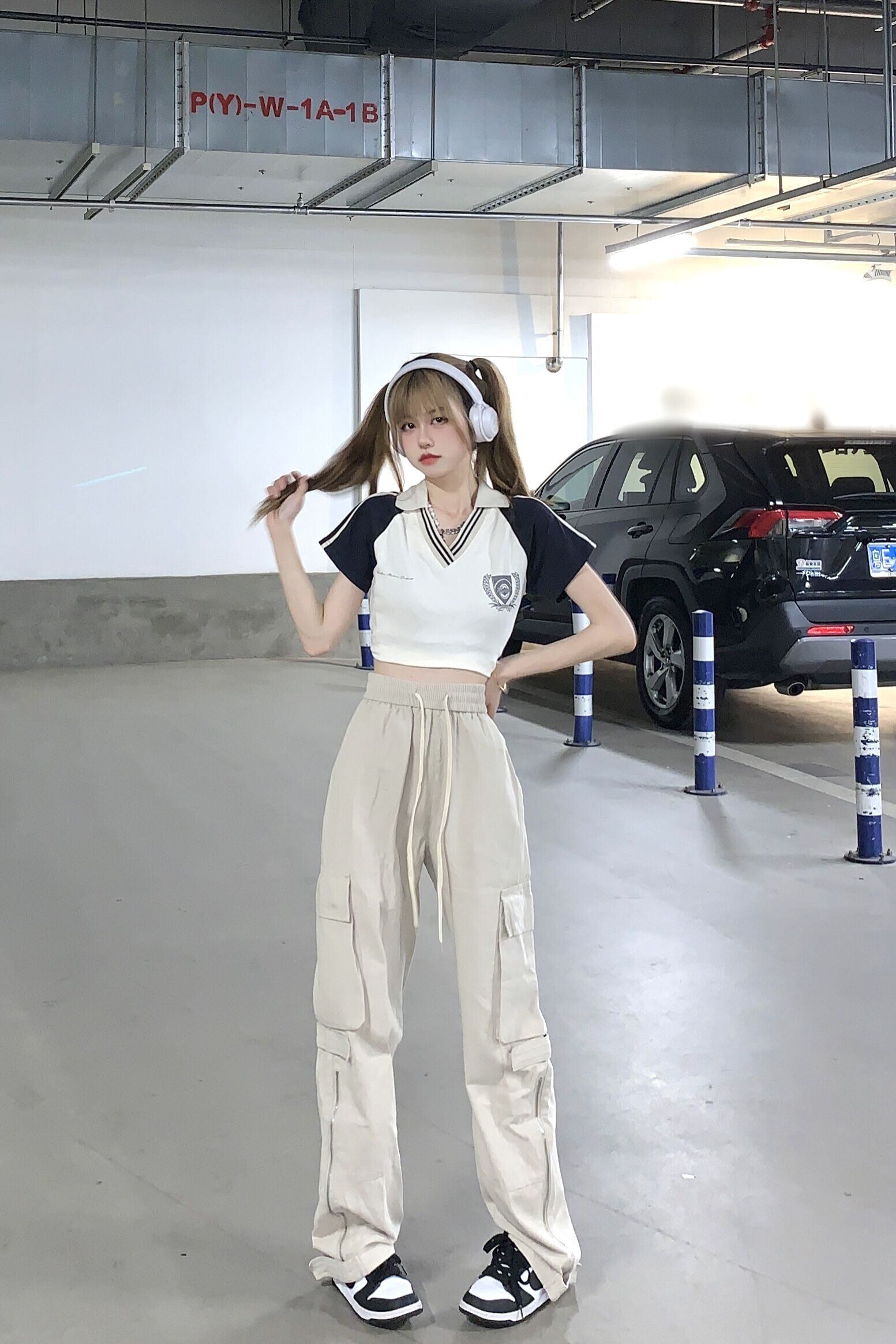 American style contrast color V-neck short-sleeved T-shirt women's summer 2022 new version loose short style all-match sweet and cool top ショート 大人ガーリー スウィート キュート カジュアル サマー 夏物 Vネック Tシャツ 0921926227407011