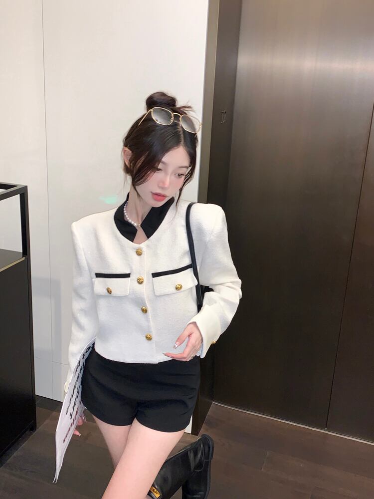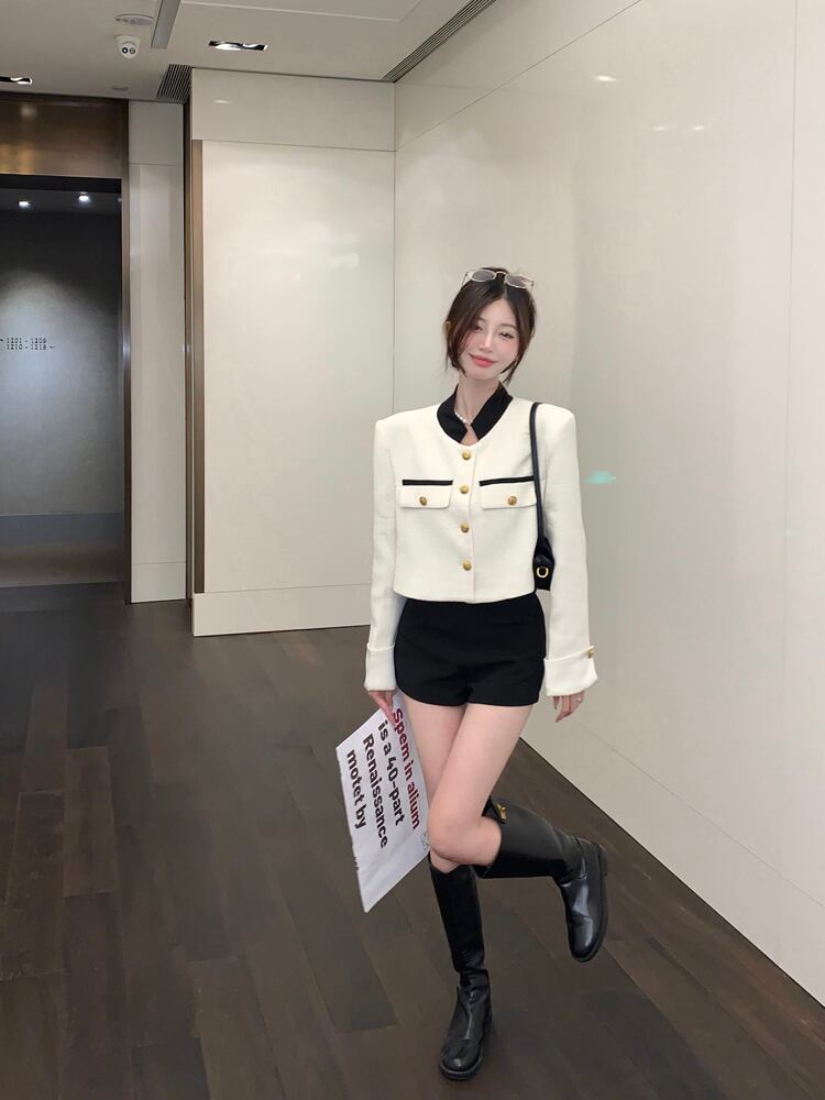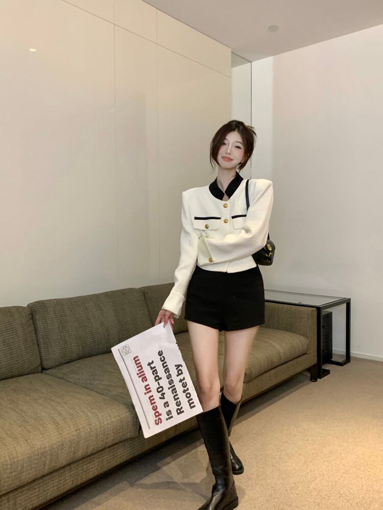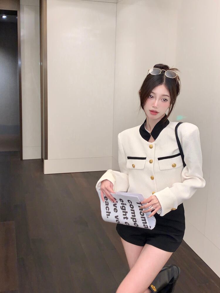 Xiaoxiangfeng contrast color stand-up collar jacket women's autumn 2022 new temperament ladies chic short long-sleeved cardigan top ショート ロング カーディガン オータム 秋物 0921978243670113