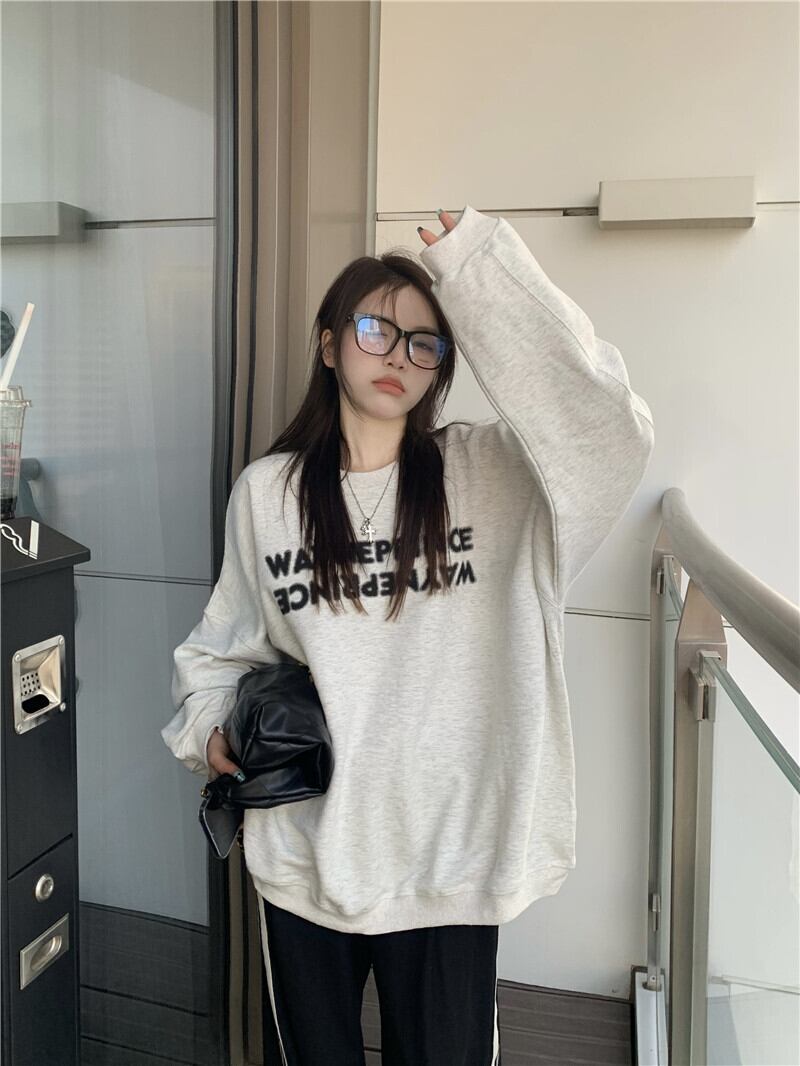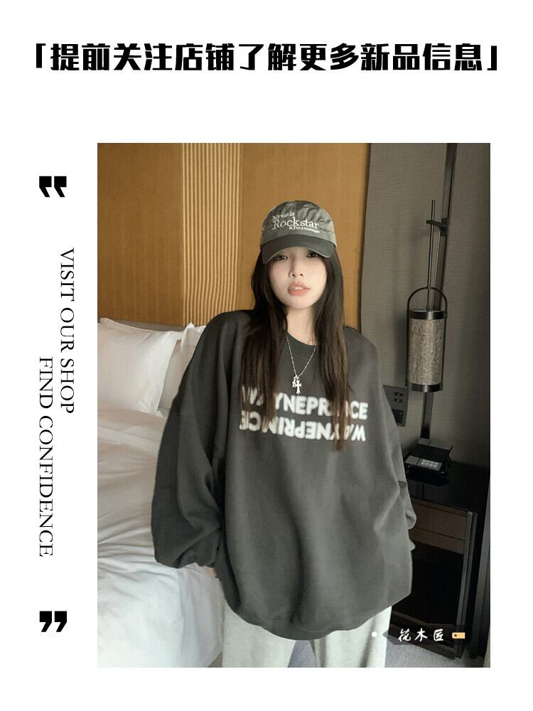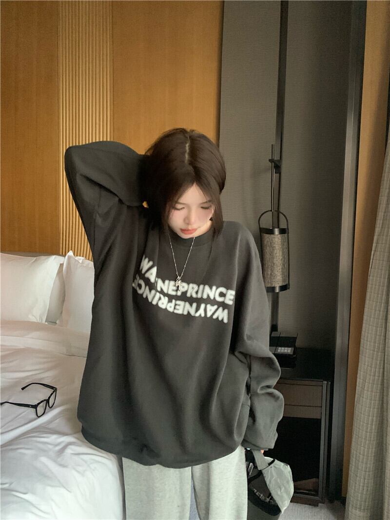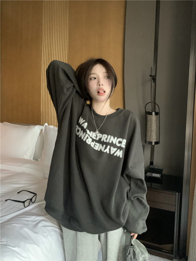version of the lazy style letter print pullover sweater women's autumn 2022 new fashion all-match loose top ins オータム 秋物 092196080288180