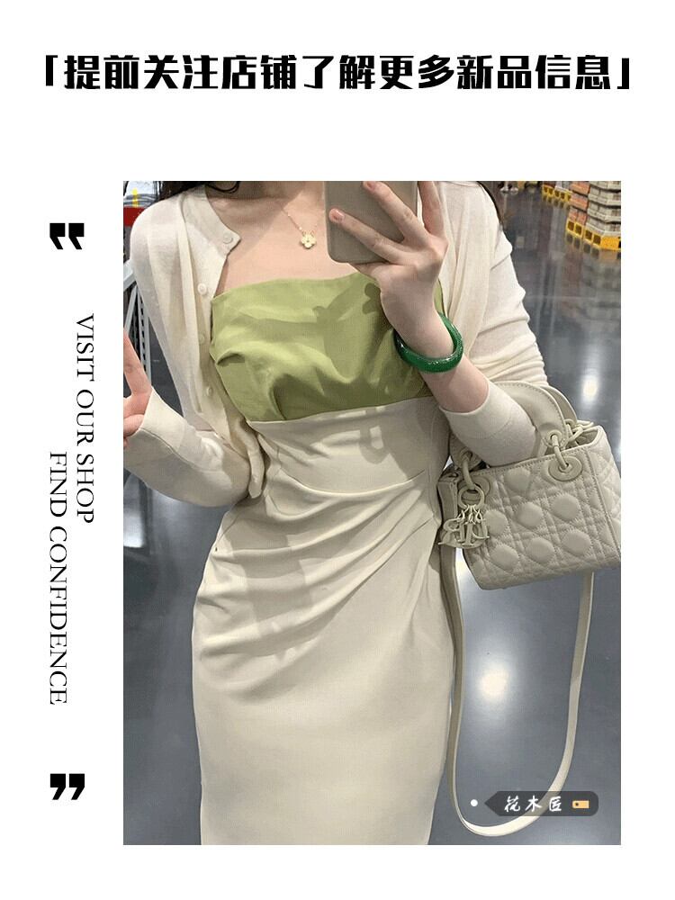 Gentle wind temperament fashion suit female autumn 2022 new color matching suspender dress all-match cardigan two-piece set カーディガン オータム 秋物 0921974036285617