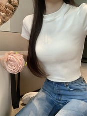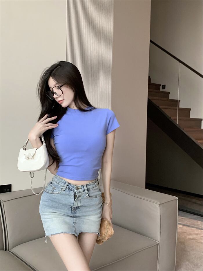 Gentle chic temperament solid color short-sleeved T-shirt women's summer 2022 new version of the slim short top ins ショート サマー 夏物 スリム Tシャツ ソリッドカラー 0921949800529886