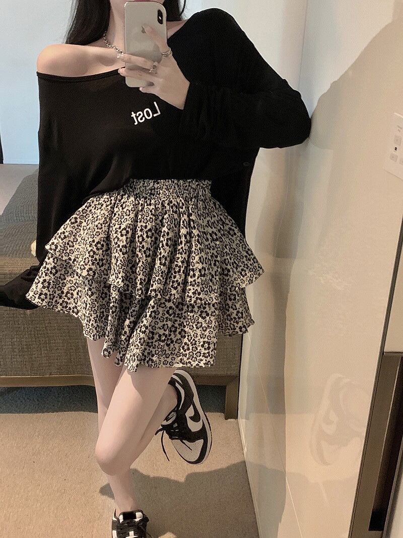 色:ブラックトップsinglepiece,花柄スカートsinglepiece