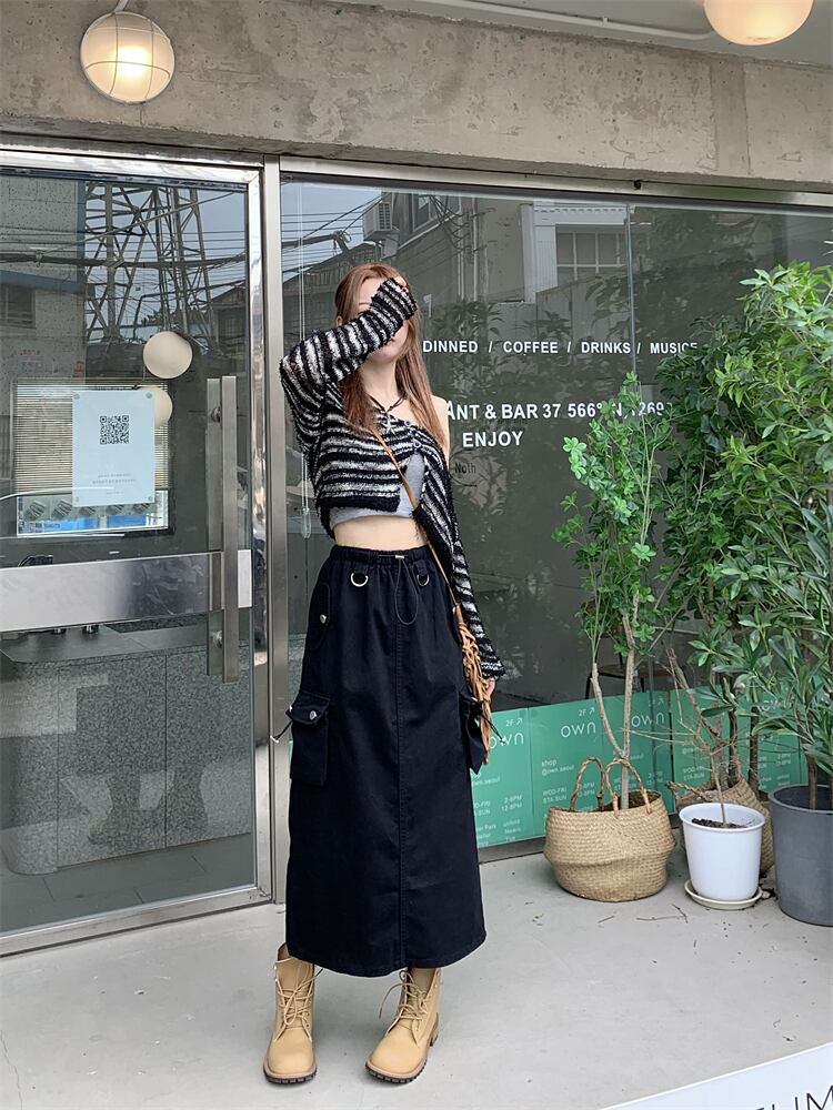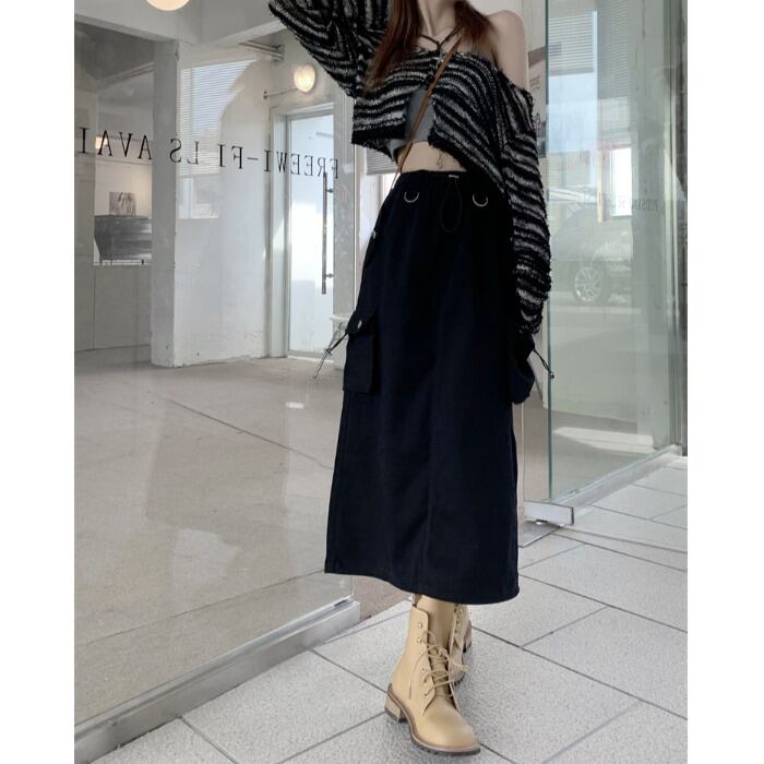 sense fashion pocket tooling skirt women's summer 2022 new version all-match high waist slim A-line skirt ハイウェスト サマー 夏物 スカート Aライン スリム 0921943077468907