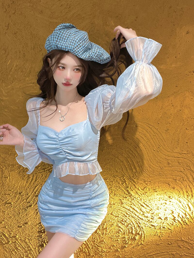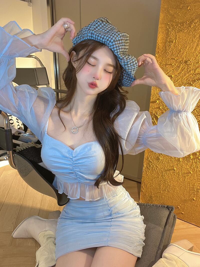 Pure lust temperament fashion suit female autumn 2022 new bell-sleeved shirt bag hip skirt two-piece tide オータム 秋物 スカート 0921916742308637