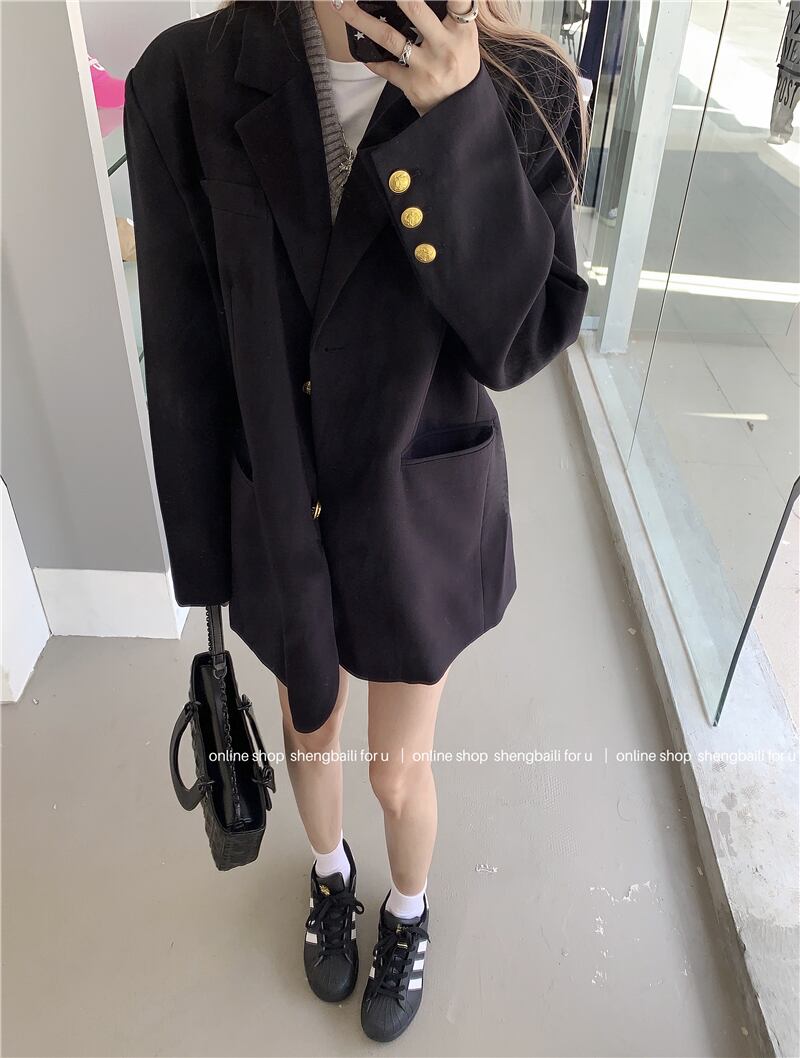 -quality simple fashion long-sleeved suit jacket women's autumn 2022 new chic gold button loose suit top ロング オータム 秋物 0921974013955533