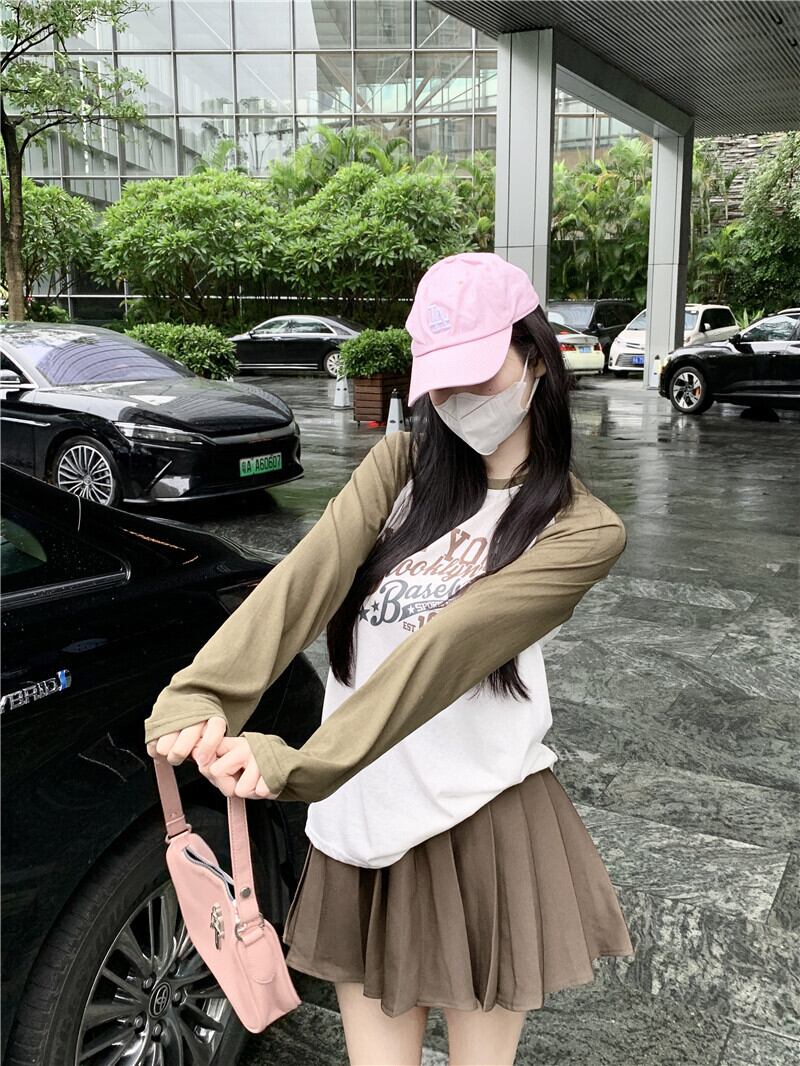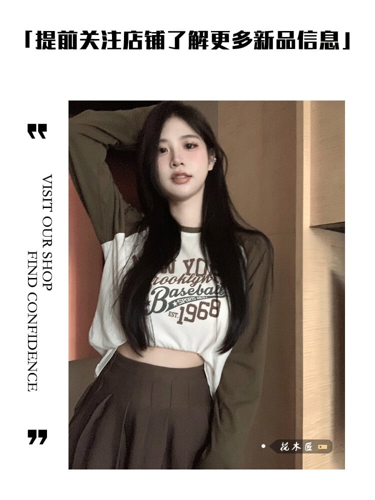 sense niche chic colorblock print long-sleeved T-shirt women's autumn 2022 new version of the wild loose top ロング オータム 秋物 Tシャツ 0921980160866874