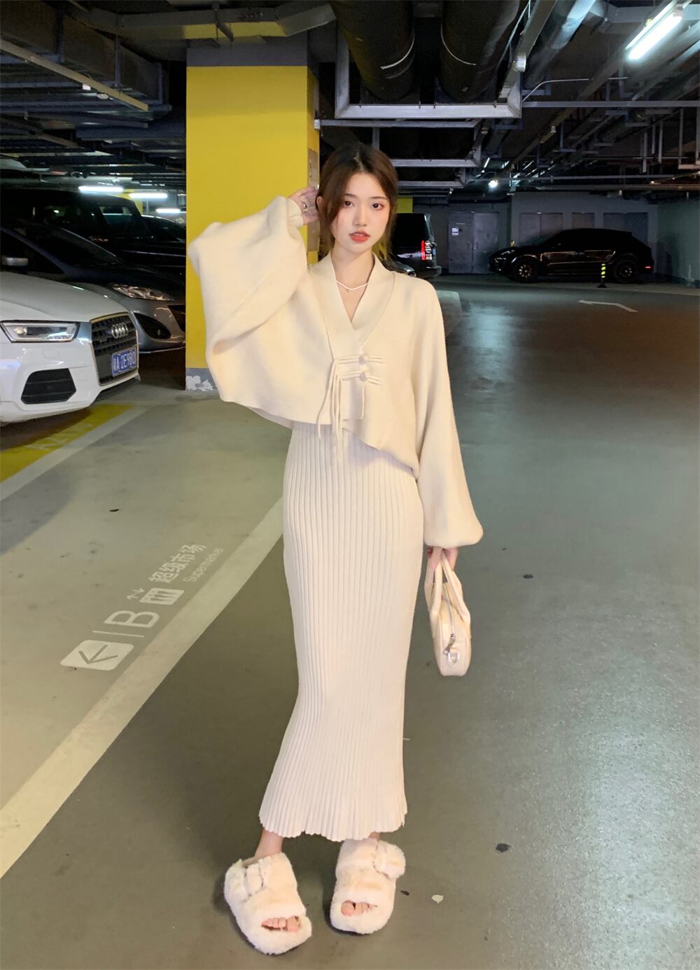 Gentle wind sweet knitted suit female autumn 2022 new loose sweater coat sling bag hip skirt two-piece set 大人ガーリー スウィート キュート カジュアル オータム 秋物 スカート 0921957171388940