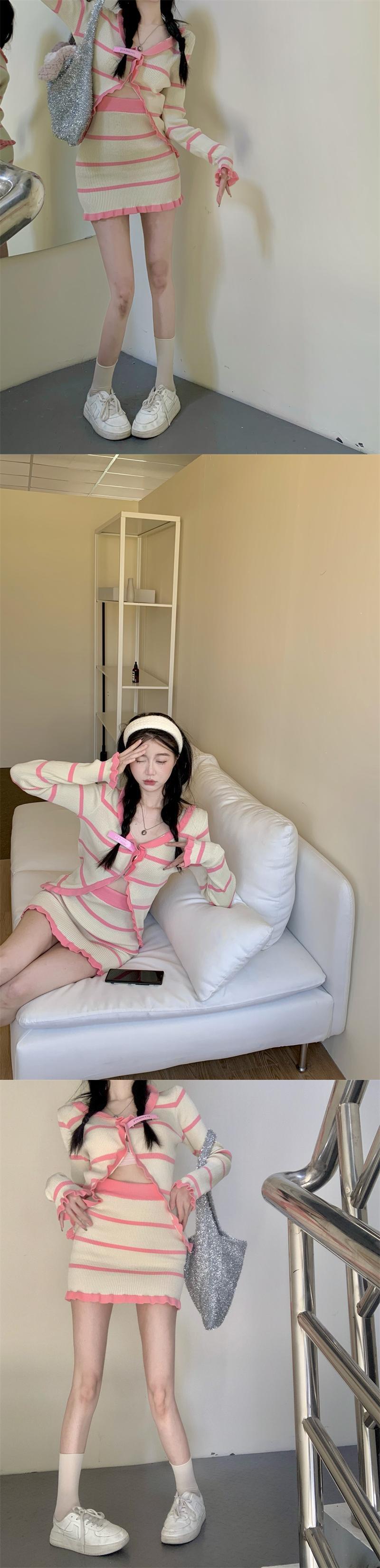 Pure desire sweet and spicy temperament knitted suit female autumn 2022 new fungus edge cardigan bag hip skirt two-piece set 大人ガーリー スウィート キュート カジュアル カーディガン オータム 秋物 スカート 092192266971157