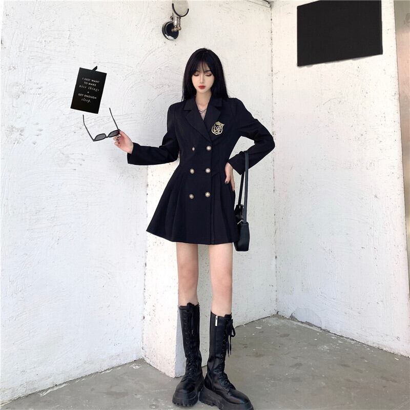 style temperament all-match suit dress women's autumn 2022 new waist and thin version long-sleeved A-line skirt ロング オータム 秋物 スカート Aライン 0921950488237432