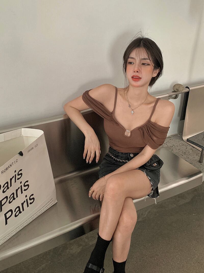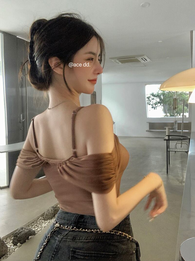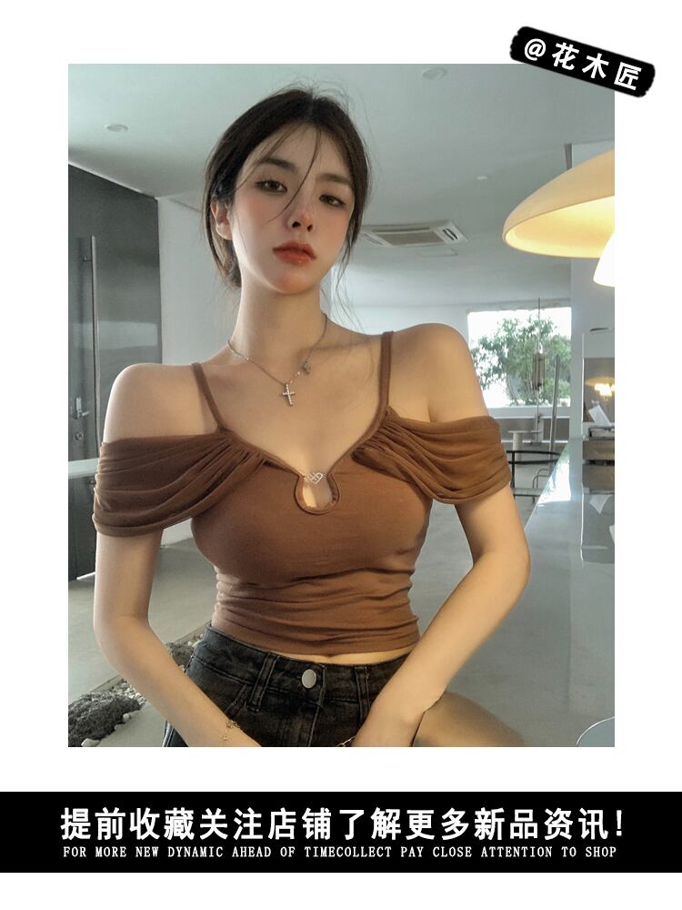 Hot V-neck suspenders stitching mesh short-sleeved T-shirt women's summer 2022 new all-match slim slim short top ショート サマー 夏物 メッシュ Vネック スリム Tシャツ ステッチ 0921929953523144