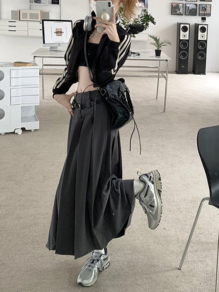 retro simple all-match solid color skirt women's autumn 2022 new high-waisted slim mid-length pleated skirt レトロ プリーツ オータム 秋物 スカート スリム ソリッドカラー 0921911948342781