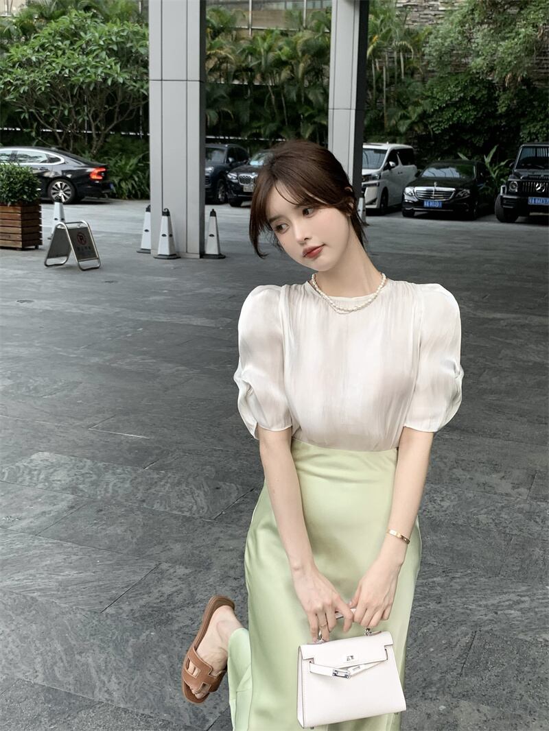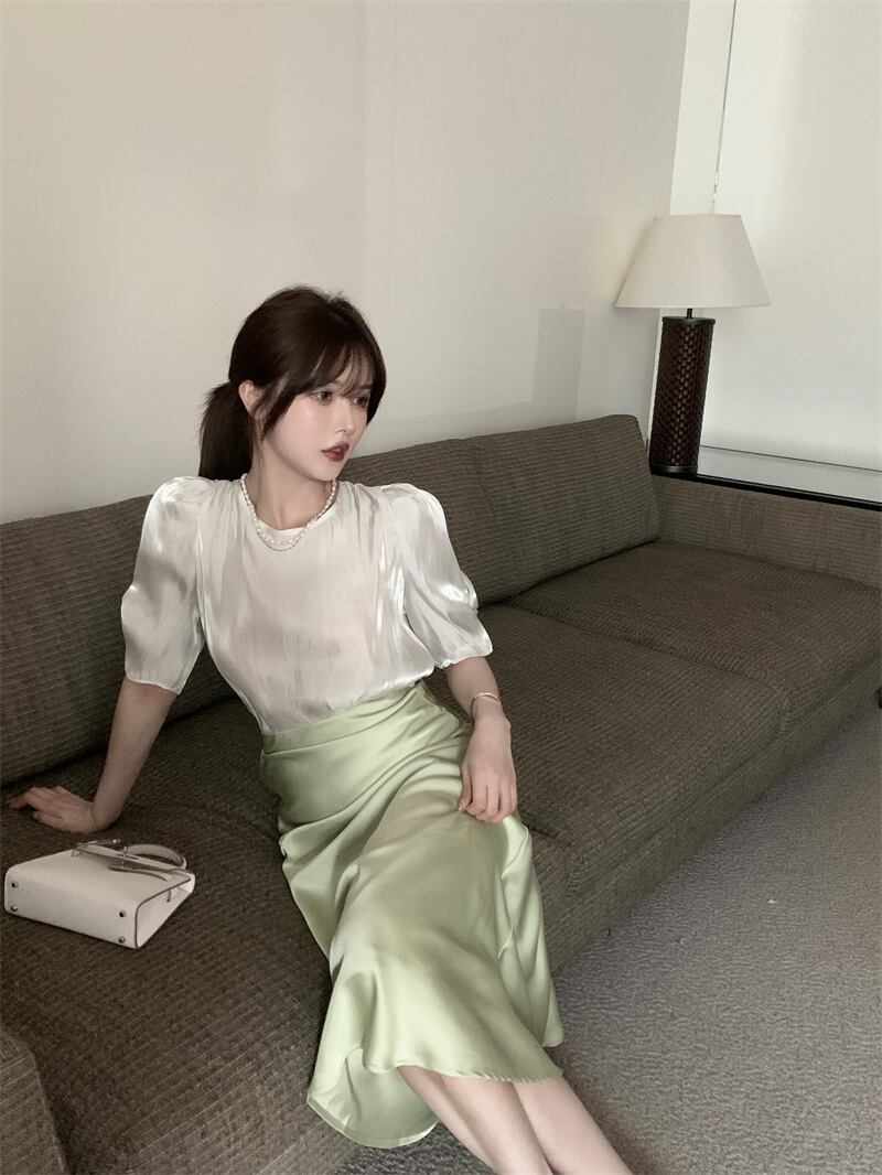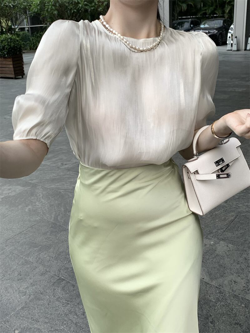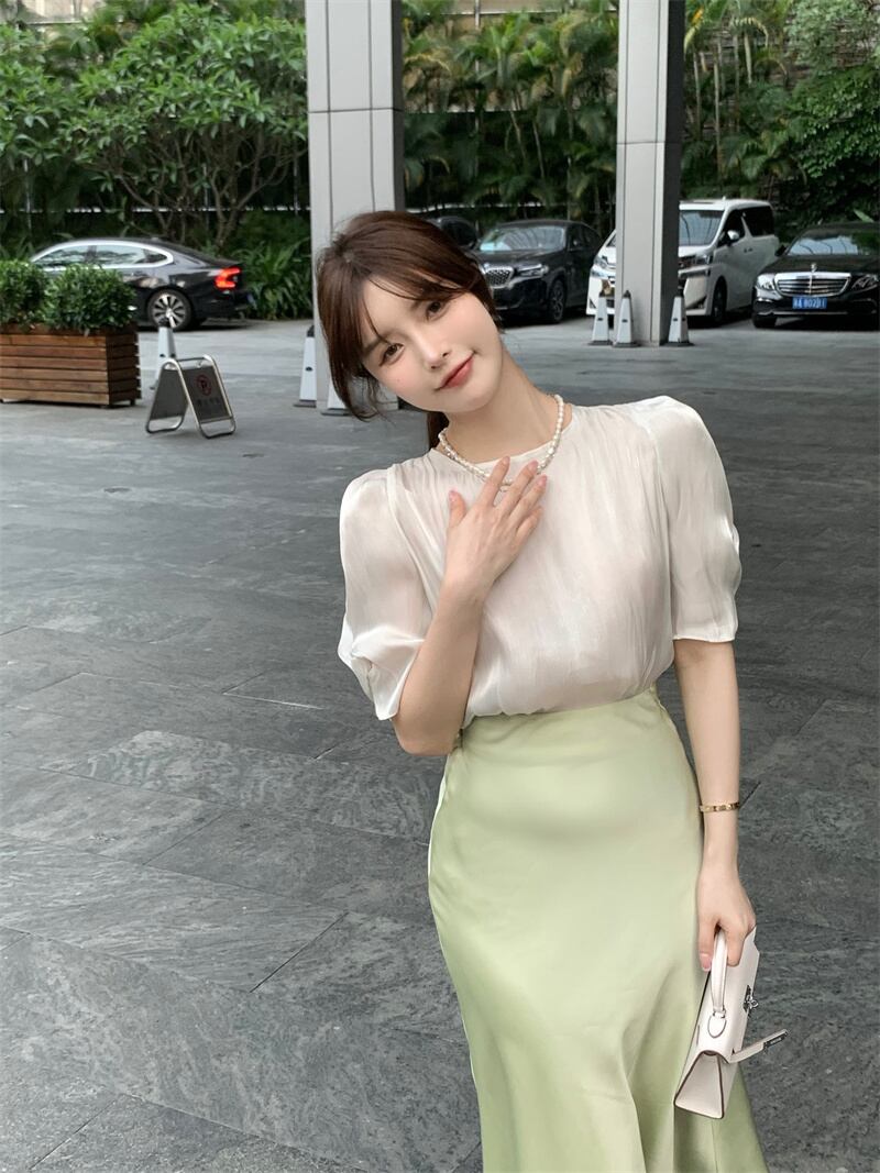 Gentle wind satin short-sleeved shirt women's high-end summer 2022 new style Western chic loose French top サマー 夏物 サテン 0921988114769745
