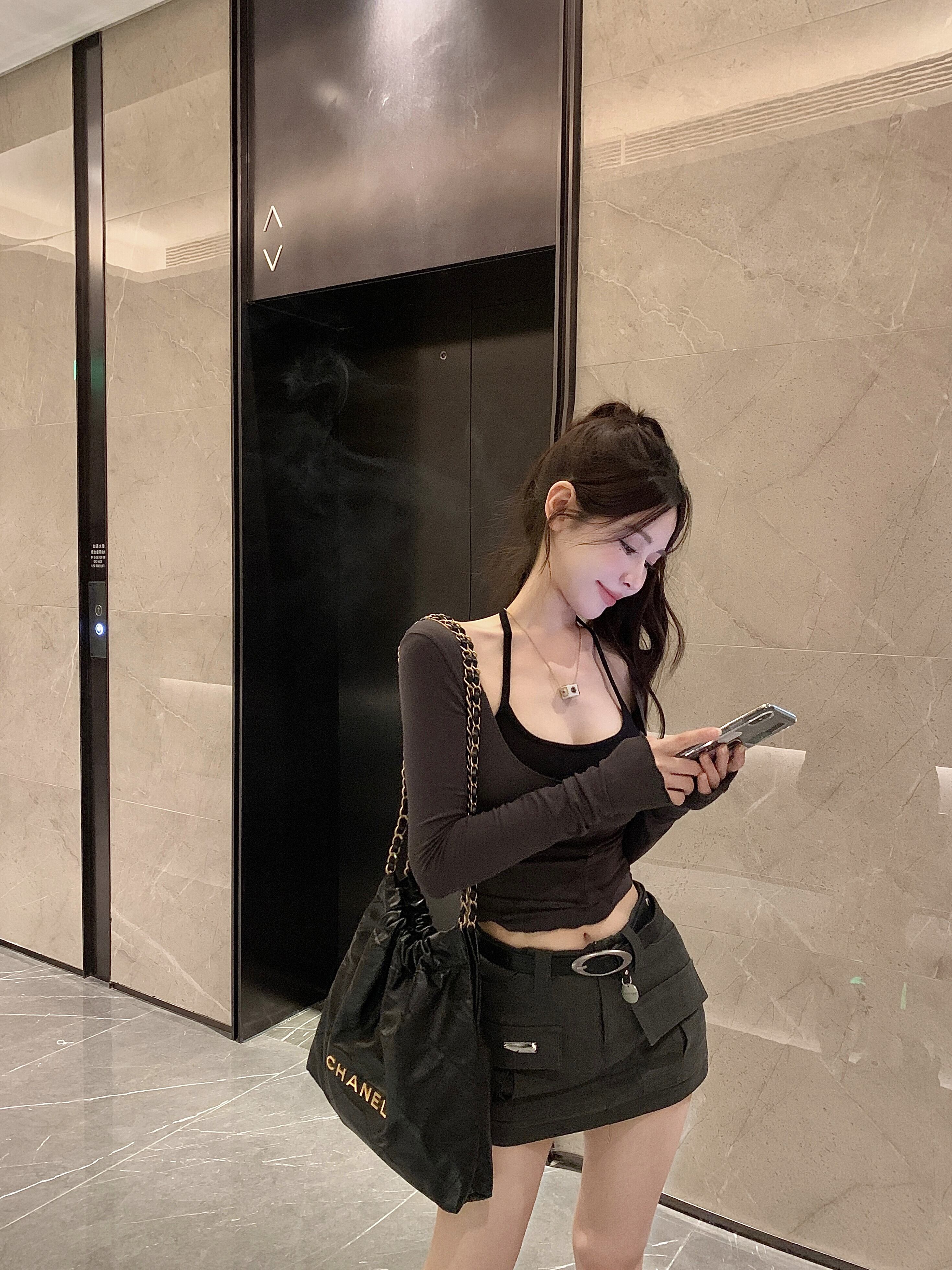 sense pure desire temperament slim long-sleeved T-shirt women's autumn 2022 new chic thin short top ショート ロング オータム 秋物 スリム Tシャツ ピュア 0921974370274998