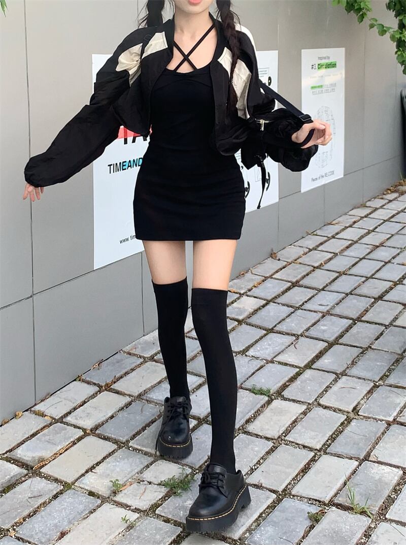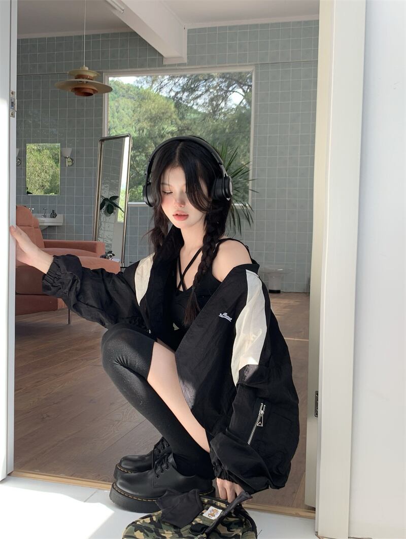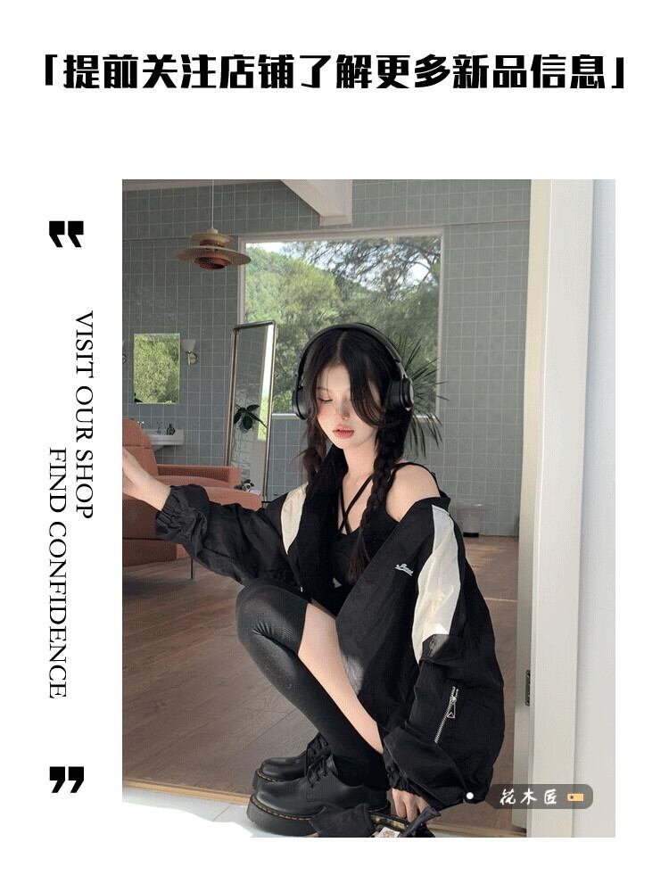 Ghost Horse Girl Contrast Color Long Sleeve Short Jacket Women's Autumn 2022 Version All-match Thin Top Trendy ショート ロング 長袖 オータム 秋物 0921993247609907