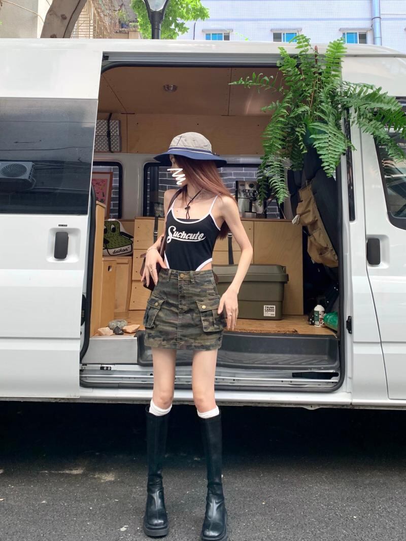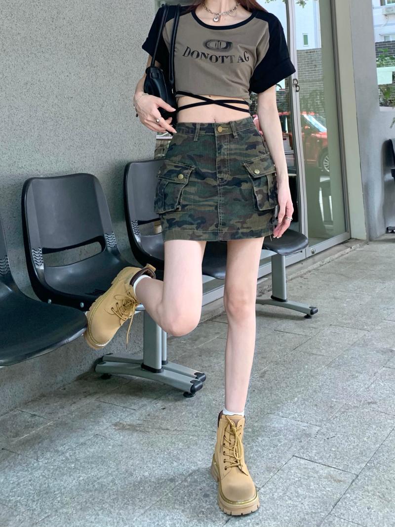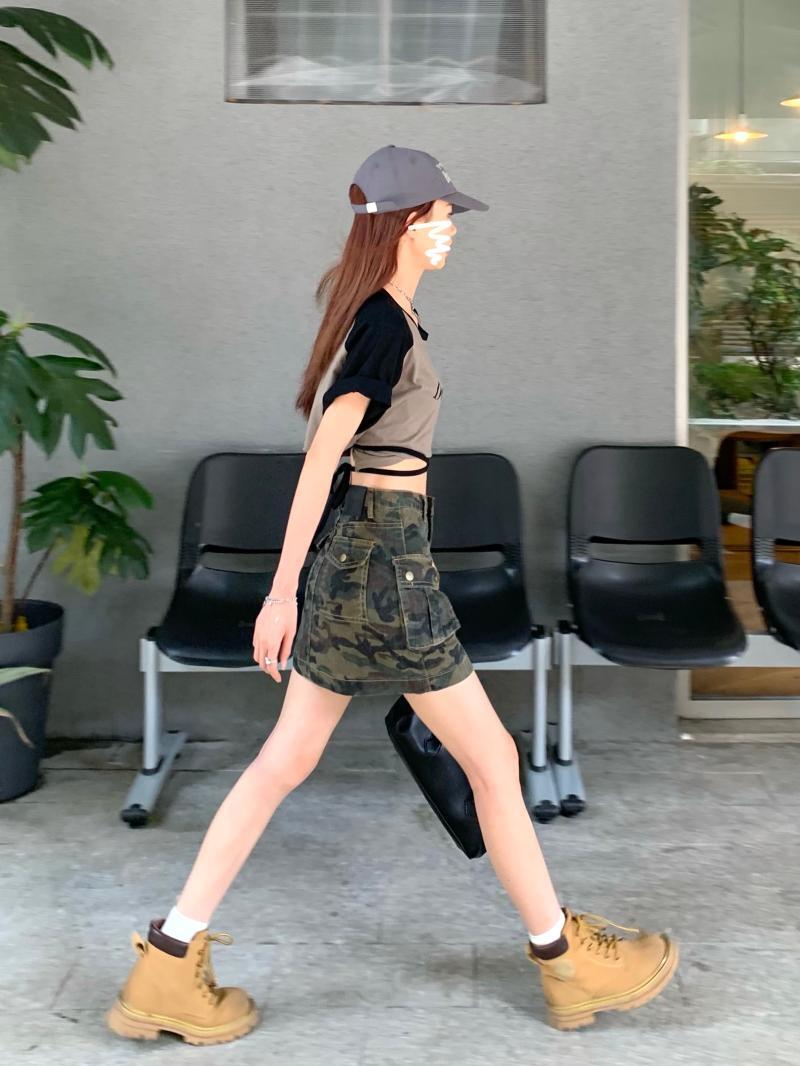 American retro camouflage tooling skirt women's summer 2022 new high waist thin all-match A-line skirt ハイウェスト レトロ サマー 夏物 スカート Aライン 0921920368874951