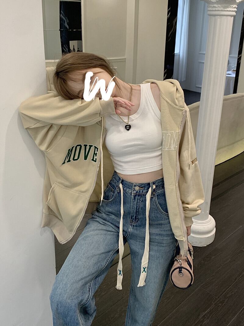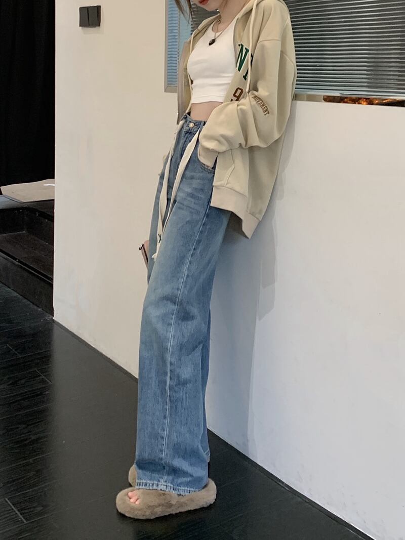 Lazy wind high waist thin embroidered drawstring jeans women's autumn 2022 new version loose wide leg mopping pants ハイウェスト レッド 刺繍 オータム 秋物 ワイドレッグ ワイドパンツ 0921973417407045