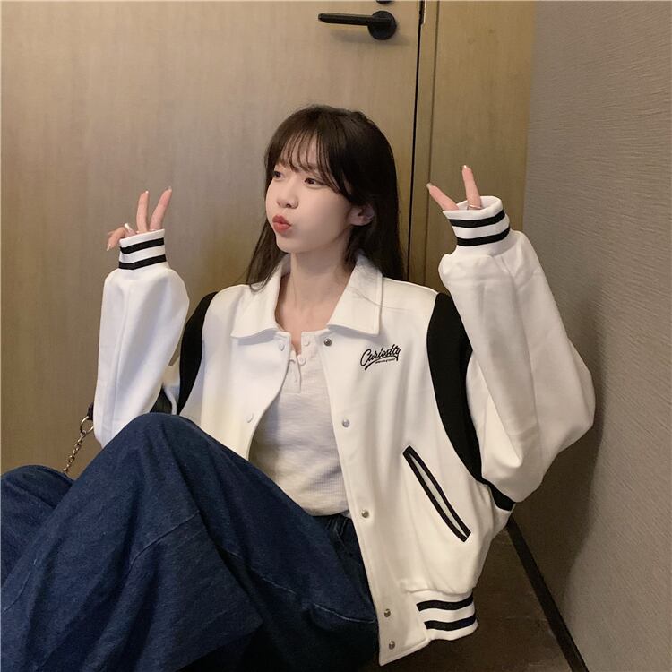 version of loose Polo collar baseball unim jacket women's autumn 2022 new design small long-sleeved cardigan top ロング カーディガン オータム 秋物 0921926859966002