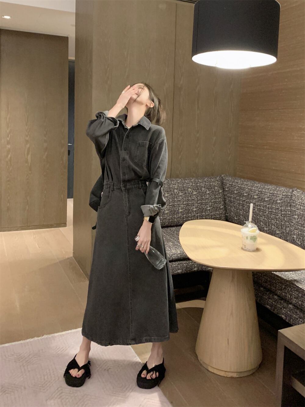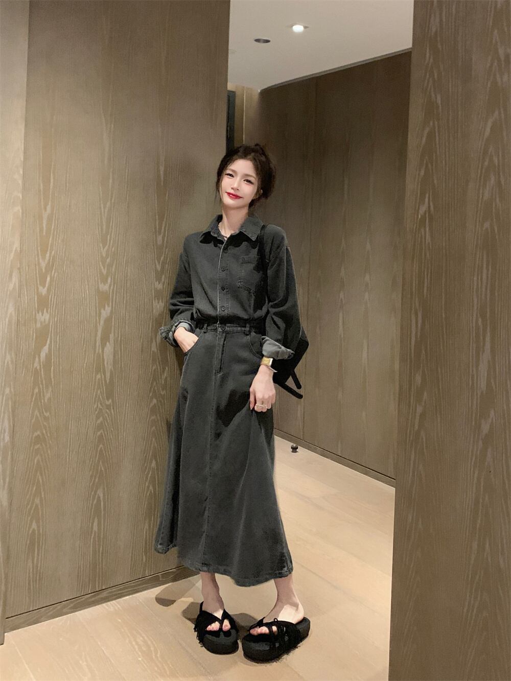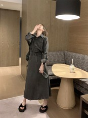 style retro design niche denim dress women's autumn 2022 new waist and thin mid-length skirt レトロ オータム 秋物 スカート 0921967700607163
