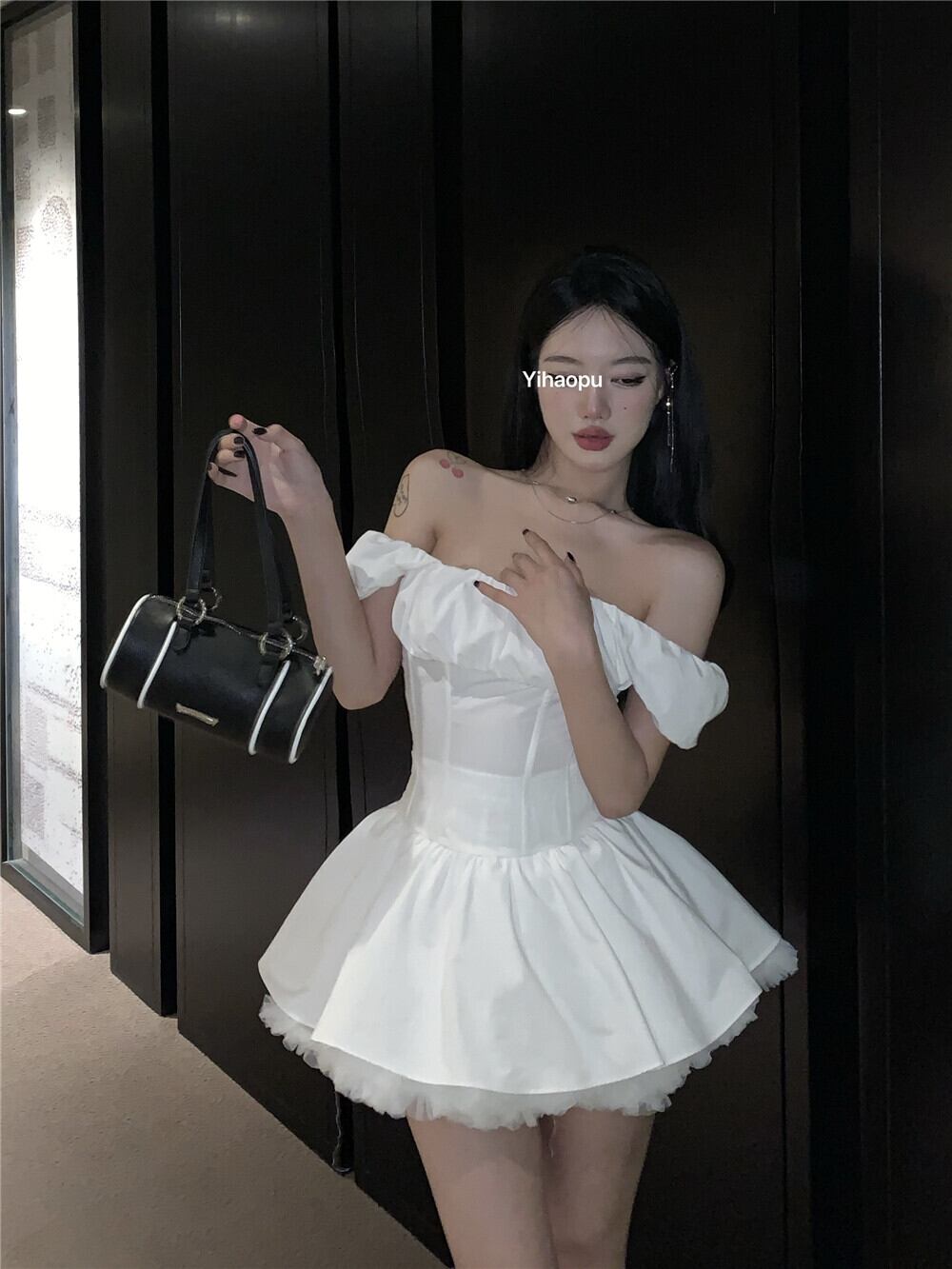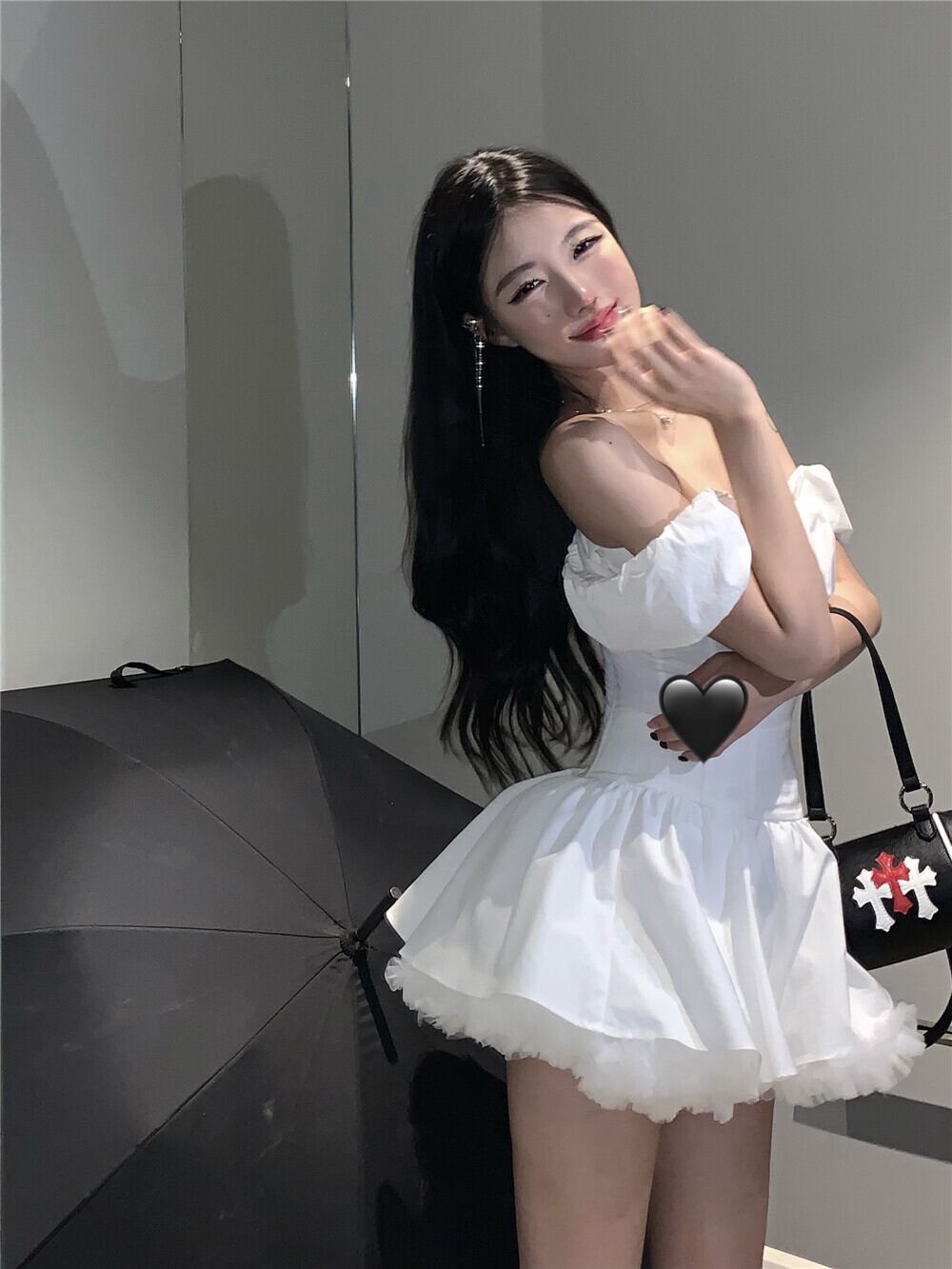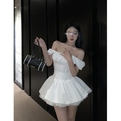 French pure desire style fashion suit female summer 2022 new one-shoulder top fluffy A-line short skirt two-piece set ショート ふわふわ サマー 夏物 スカート Aライン ピュア 0921940171157429