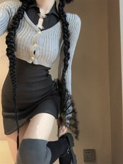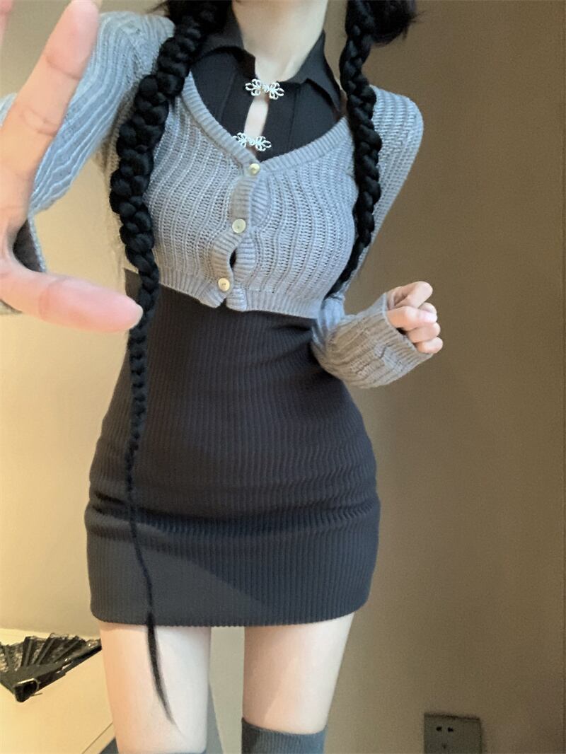 Chinese chic slim knitted dress women's autumn 2022 new buckle temperament slim hip skirt オータム 秋物 スリムヒップ スカート スリム 0921938237039940