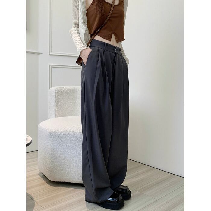 -end chic drape suit pants gray high-waist casual pants women's early autumn 2022 new loose wide-leg pants trend カジュアル オータム 秋物 0921957451616341