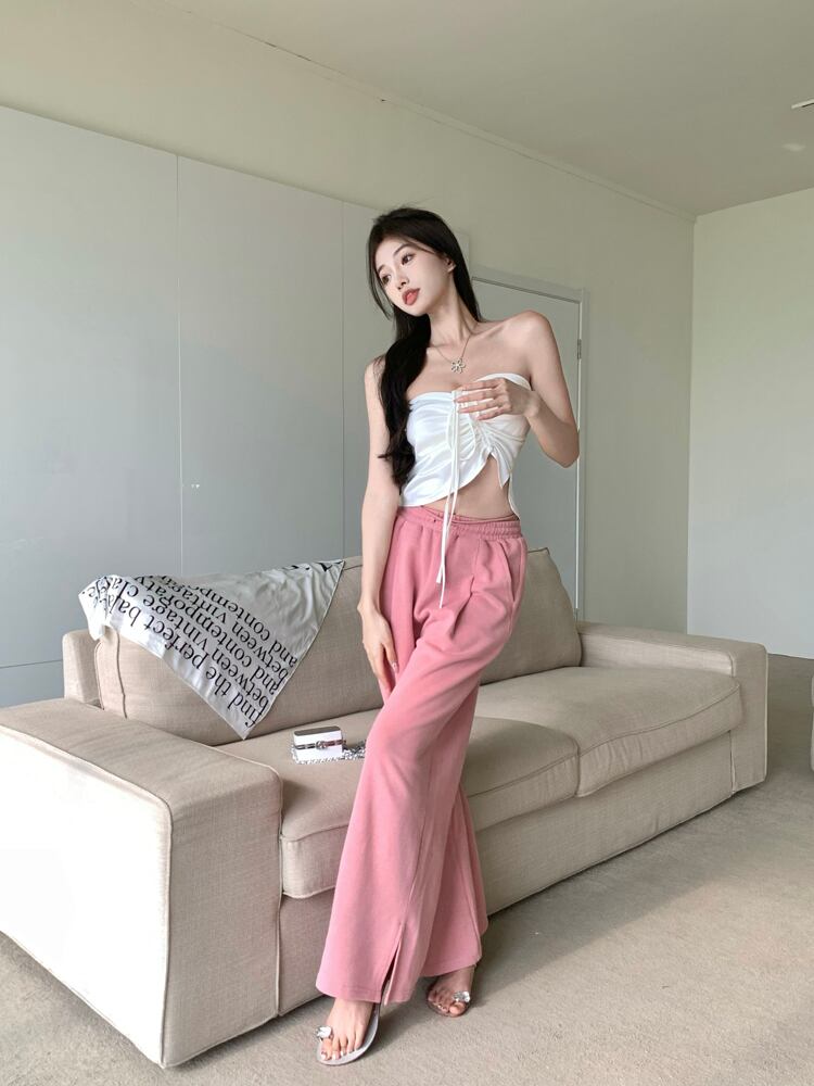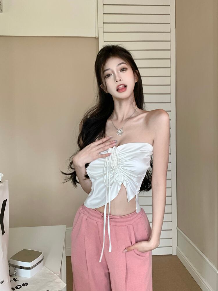 Satin white lace-up tube top vest women's outer wear summer 2022 new sexy slim short wrap chest top trendy ショート ホワイト レース サマー 夏物 サテン スリム レースアップ 0921995940776930