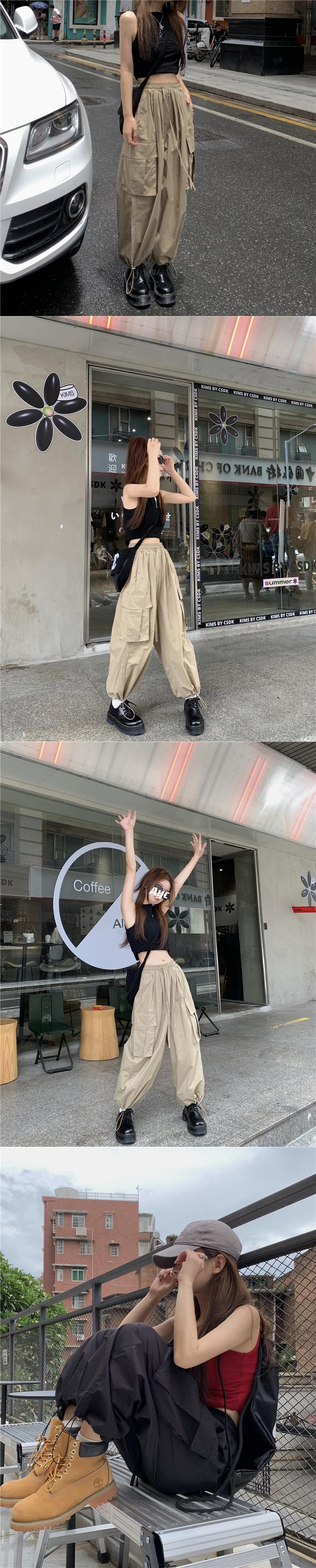 Hot chic overalls casual pants women loose and thin autumn 2022 new design sense fried street high waist corset pants ハイウェスト コルセット カジュアル ストリート オータム 秋物 0921988610491134