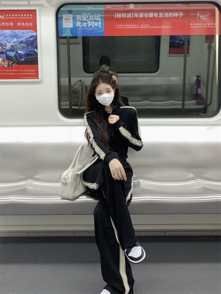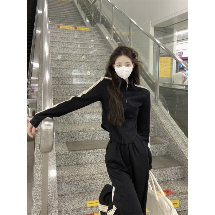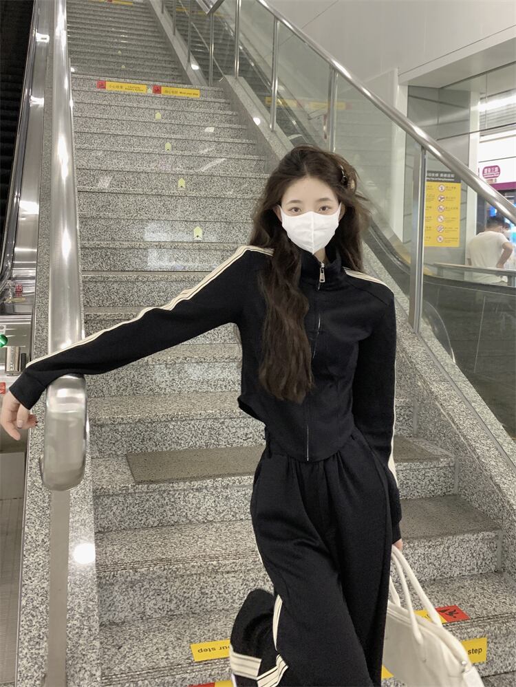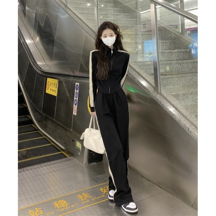 retro casual suit female autumn 2022 new stand collar jacket top sports loose trousers two-piece set レトロ カジュアル オータム 秋物 0921960913257085