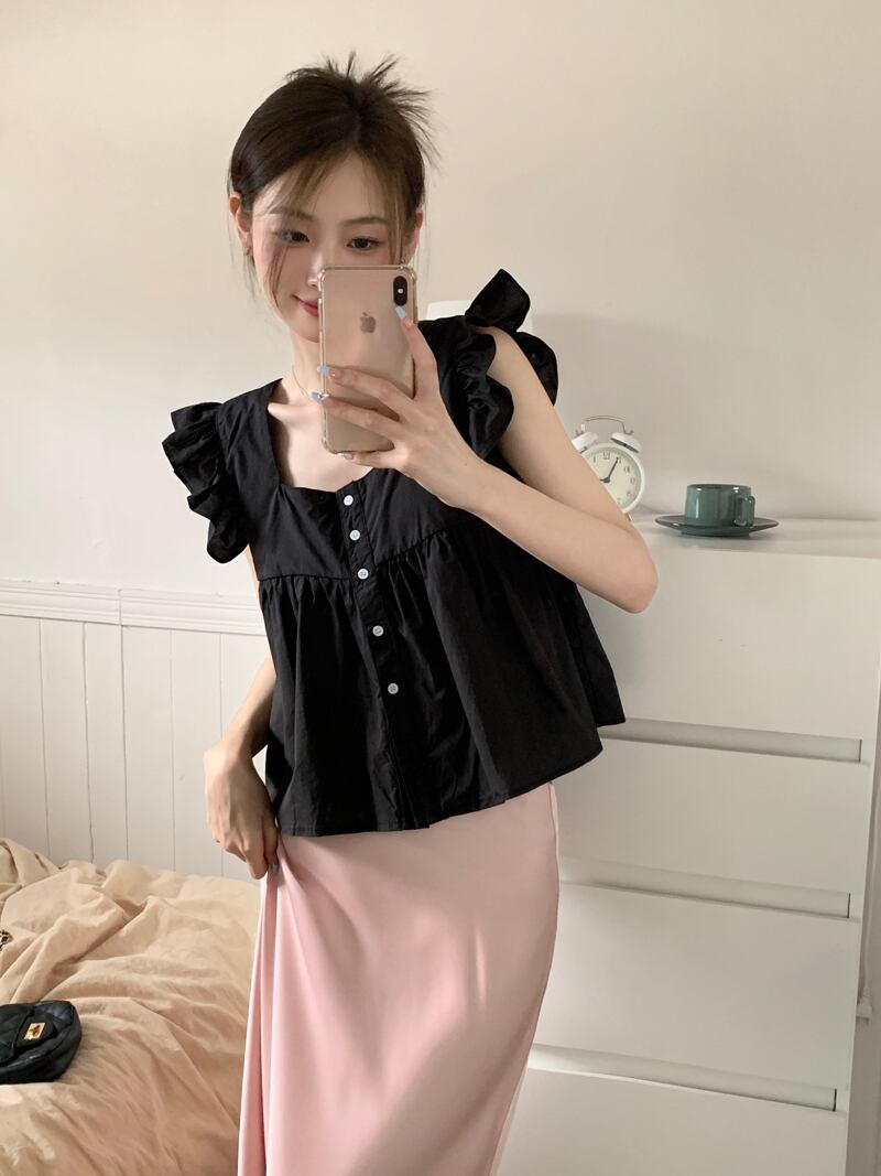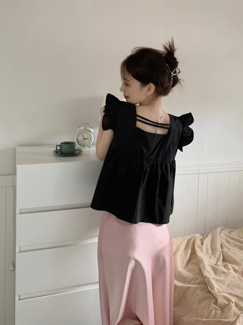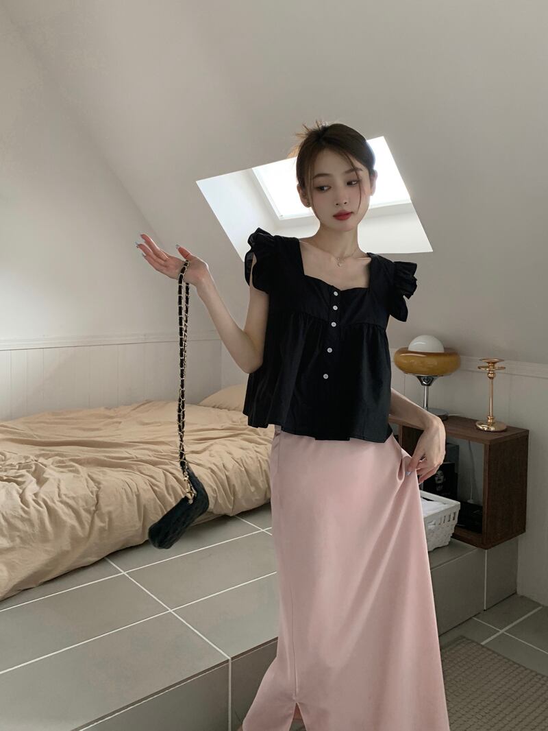 sense fashion suit women's summer 2022 new flying sleeves square collar shirt mid-length skirt two-piece set サマー 夏物 スカート スクウェア 0921999813302005