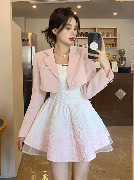 色:ブラックjacketsinglepiece,ワンpieceofピンクjacket,ブラックsuspenderスカート,ピンクsuspenderドレス