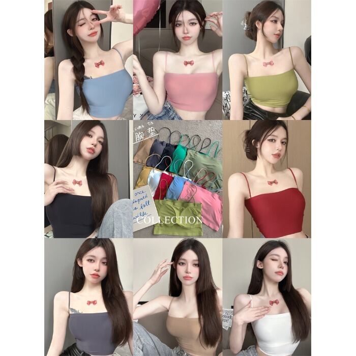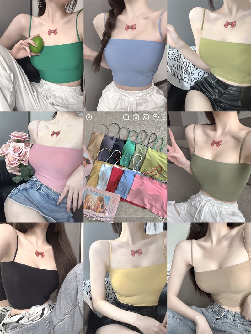 Simple and versatile solid color camisole with chest pad women's summer 2022 new slim short sleeveless top ショート 半袖 ハーフスリーブ サマー 夏物 ノースリーブ スリム ソリッドカラー 0921934640128544