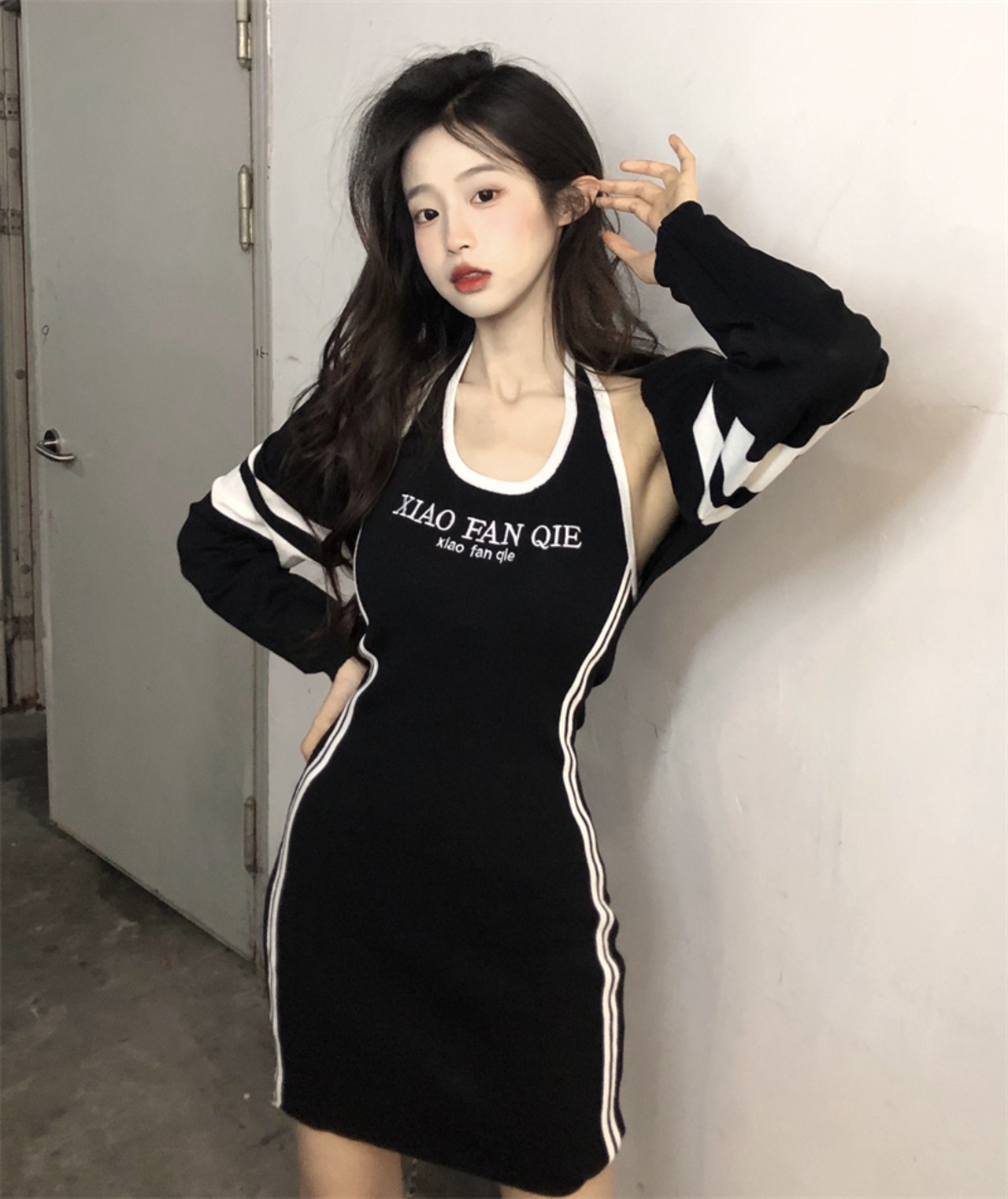 American alphabet print slim halter dress summer 2022 new slim sexy bag hip short skirt ショート サマー 夏物 スカート スリム 0921959632068233