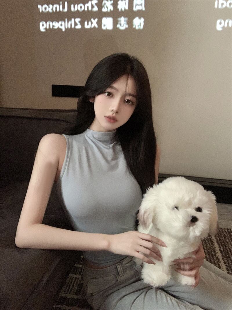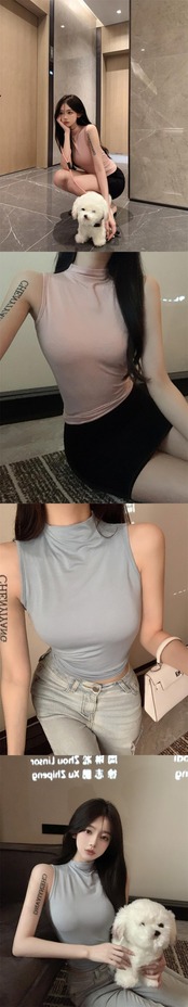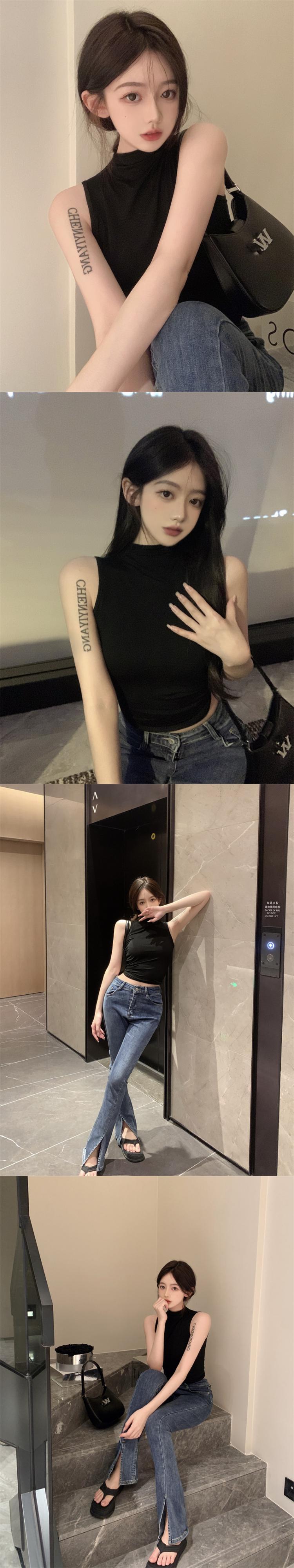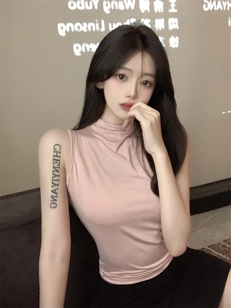 Pure Desire Wind Half Turtleneck Solid Color Sleeveless T-Shirt Women's Summer 2022 Temperament Versatile Slim Fit Thin Top ins サマー 夏物 ノースリーブ スリム Tシャツ ソリッドカラー 0921997256852779